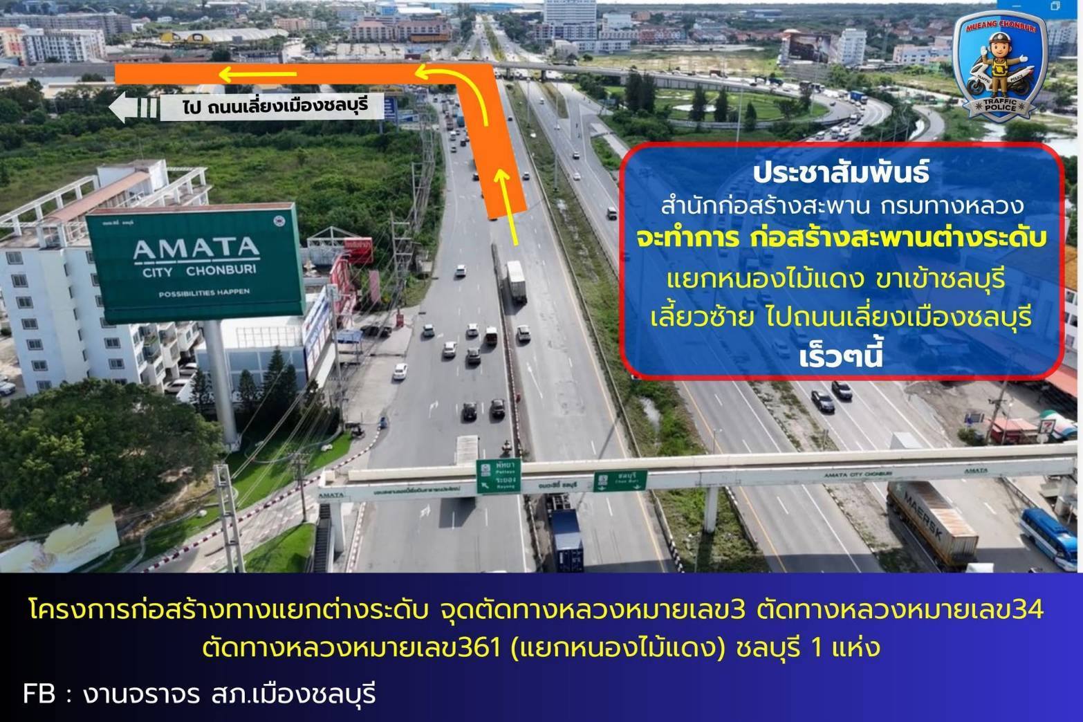 การทางพิเศษแห่งประเทศไทย (กทพ.) ขอแจ้งประชาสัมพันธ์ผู้ใช้ทางที่เดินทางมุ่งหน้าสู่พื้นที่จังหวัดชลบุรี เนื่องจากปัจจุบันมีการดำเนินโครงการก่อสร้างและซ่อมบำรุงสะพานในพื้นที่ต่อเนื่องกันหลายจุด อาจส่งผลให้การจราจรชะลอตัวและเกิดความไม่สะดวกในการเดินทาง