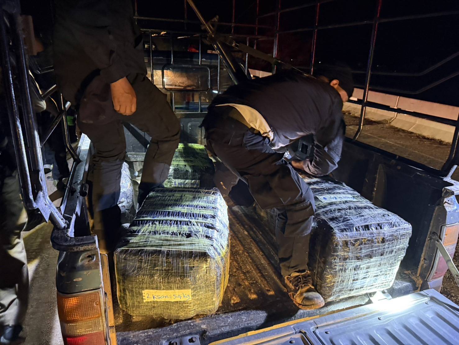 กระทั่ง เจ้าหน้าที่ชุดจับกุมได้ทำการดักซุ่ม เฝ้าสังเกตุที่บริเวณริมฝั่งแม่น้ำโขงในพื้นที่ดังกล่าว พบมีเรือมาจอดเทียบฝั่งพร้อมทั้งโยนห่อพัสดุจำนวนหลายห่อลงจากเรือแล้วขี่ข้ามฟากไปทางฝั่งลาว จากนั้นได้มีชาย จำนวน 2 คน แบกห่อพัสดุขึ้นบนรถยนต์และขับขี่ออกไป เจ้าหน้าที่ชุดจับกุมได้ส่งสัญญาณให้อีกชุดที่ทำการดักซุ่มอยู่ระหว่างทางให้เตรียมตัว ทั้งแจ้งตำหนิรถยนต์ให้ทราบ เมื่อถึงบริเวณถนนหมายเลข 212 สาย (บึงกาฬ-บุ่งคล้า) เจ้าหน้าที่ได้แสดงตัวแจ้งให้รถยนต์คันดังกล่าวหยุดรถ แต่ผู้ขับขี่รถคันดังกล่าวไม่ยอมหยุด ทั้งยังเร่งเครื่องยนต์เพื่อหลบหนี เจ้าหน้าที่จึงได้ไล่ติดตาม และได้สกัดจับผู้ต้องได้ที่บริเวณสะพานแห่งหนึ่ง ถนน สาย (พรชัย-เซกา) พื้นที่ ต.ชัยพร อ.เมืองบึงกาฬ จว.บึงกาฬ ได้ทำการจับกุมผู้ต้องหา จำนวน 2 คน 1.นายนัน (นามสมมุติ) อายุ 53 ปี - คนขับรถ 2.นายปัน (นามสมมุติ) อายุ 59 ปี - ผู้โดยสาร ผู้โดยสารคนนั่งข้างคนขับรถ พร้อมด้วย ของกลางดังกล่าวข้างต้น