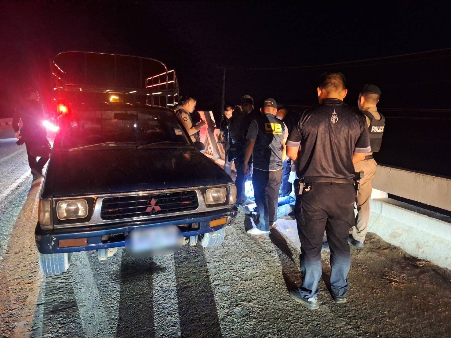 กองบังคับการปราบปราม (บก.ป.) โดย พล.ต.ต.พัฒนศักดิ์ บุปผาสุวรรณ ผบก.ป. พร้อมกำลังเจ้าหน้าที่ชุดตรวจค้น กก.3 บก.ป. ร่วมกับ กองบังคับการตำรวจทางหลวง (บก.ทล.) ส.ทล.3 กก.4 บก.ทล. ผู้ต้องหา จำนวน 2 ราย ได้แก่