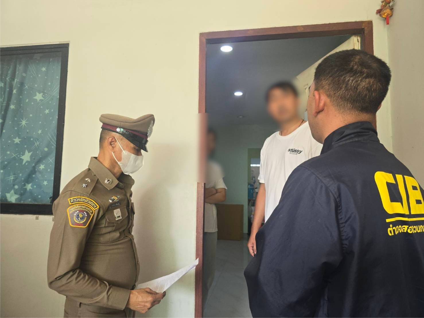 เจ้าหน้าที่ชุดสืบสวนได้ตัว และแสดงหมายค้น พร้อมทั้งแจ้งให้พ่อค้านายกาน (นามสมมุติ) อายุ 38 ปี ทราบเหตุของการเข้าตรวจค้น จากการเข้าตรวจค้นพบสินค้าประเภทกระเป๋า เครื่องหนัง แว่นตา แบรนด์ดังจากต่างประเทศปลอม จำนวนกว่า 100 ชิ้น ซุกซ่อนเก็บอยู่ภายในบ้าน และยังพบอุปกรณ์ใช้ในการไลฟ์สด อาทิ อุปกรณ์ฉากหลัง ขาตั้งโทรศัพท์ใช้ไลฟ์สด ไฟไลฟ์สด (Live Stream Light) เปิดใช้งานอยู่ขณะจับกุม เจ้าหน้าที่ตำรวจจึงได้แจ้งข้อกล่าวหาและสิทธิให้ทราบ จากนั้นได้จับกุมตัวพร้อมยึดของกลาง นำส่งพนักงานสอบสวน กก.1 บก.ปอศ.ดำเนินคดีต่อไป