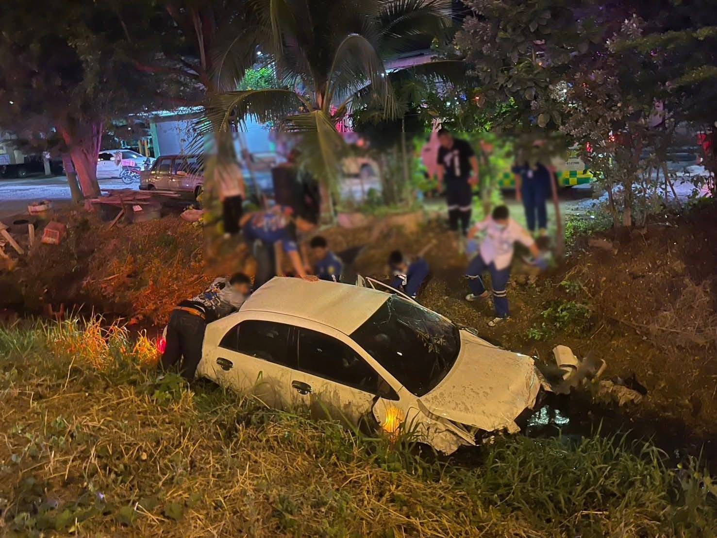 ที่เกิดเหตุ พบรถจักรยานยนต์ ยามาฮ่า ฟินน์ ล้มคว่าสภาพรถพังเสียหาย ห่างออกไปที่ร่องน้ำข้างทาง พบรถนั่งส่วนบุคคล โตโยต้า อัลติส สีขาว ตกอยู่ในสภาพรถพัง ตรวจสอบ พบว่ามีผู้ได้รับบาดเจ็บ 2 ราย เป็นหญิงไทย อายุ 55 ปี และ อายุ 67 ปี ทางอาสาสมัครให้การช่วยเหลือและนำส่ง รพ.สมเด็จฯ19 ส่วนในจุดเกิดเหตุ พบว่ามีผู้เสียชีวิต 1 ราย ตรวจสอบเอกสาร เป็นชายไทย อายุ 25 ปี ในส่วนของสาเหตุที่แท้จริงนั้นอยู่ระหว่างการสอบสวนของเจ้าหน้าที่ตำรวจ สภ.ท่าม่วง
