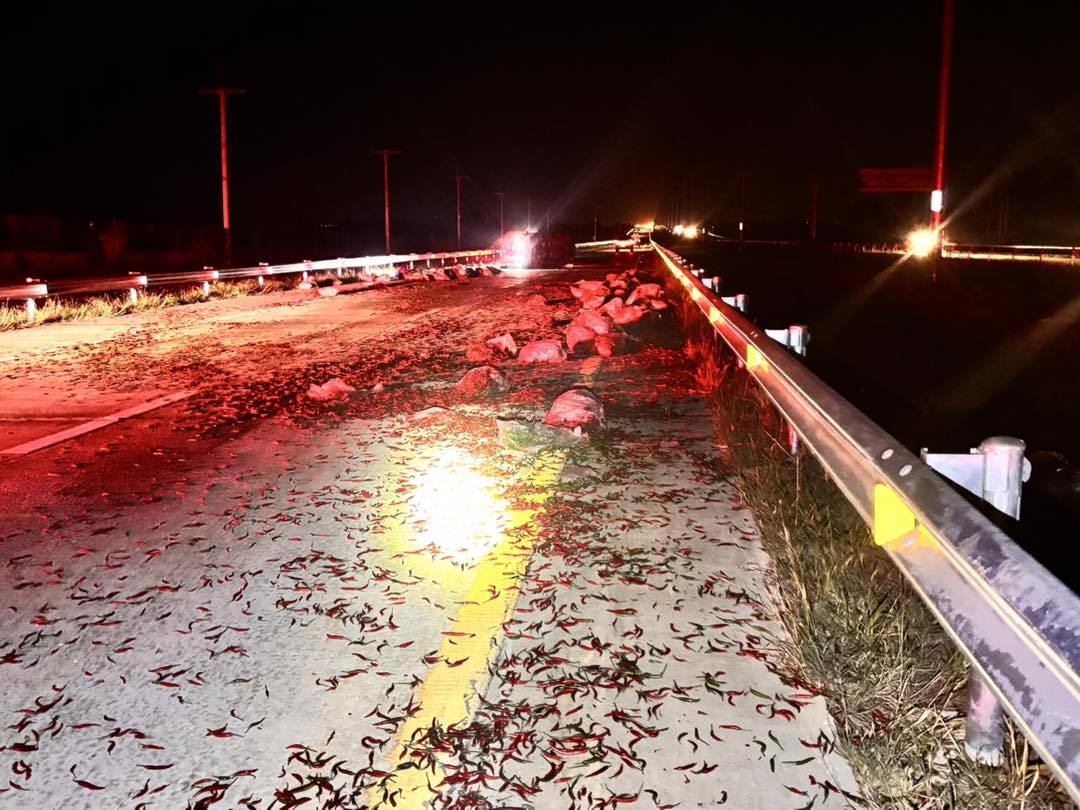 เช้านี้ มอเตอร์เวย์ M6 ขาเข้า กทม. เขตสูงเนิน มีอุบัติเหตุกระบะ เสียหลักพลิกตะแคง ทำให้พริกสดที่บรรทุกมา หล่นเกลื่อนพื้นถนน รถเริ่มชะลอตัว #รายงานจราจร #อุบัติเหตุ #รถติด #FM91
