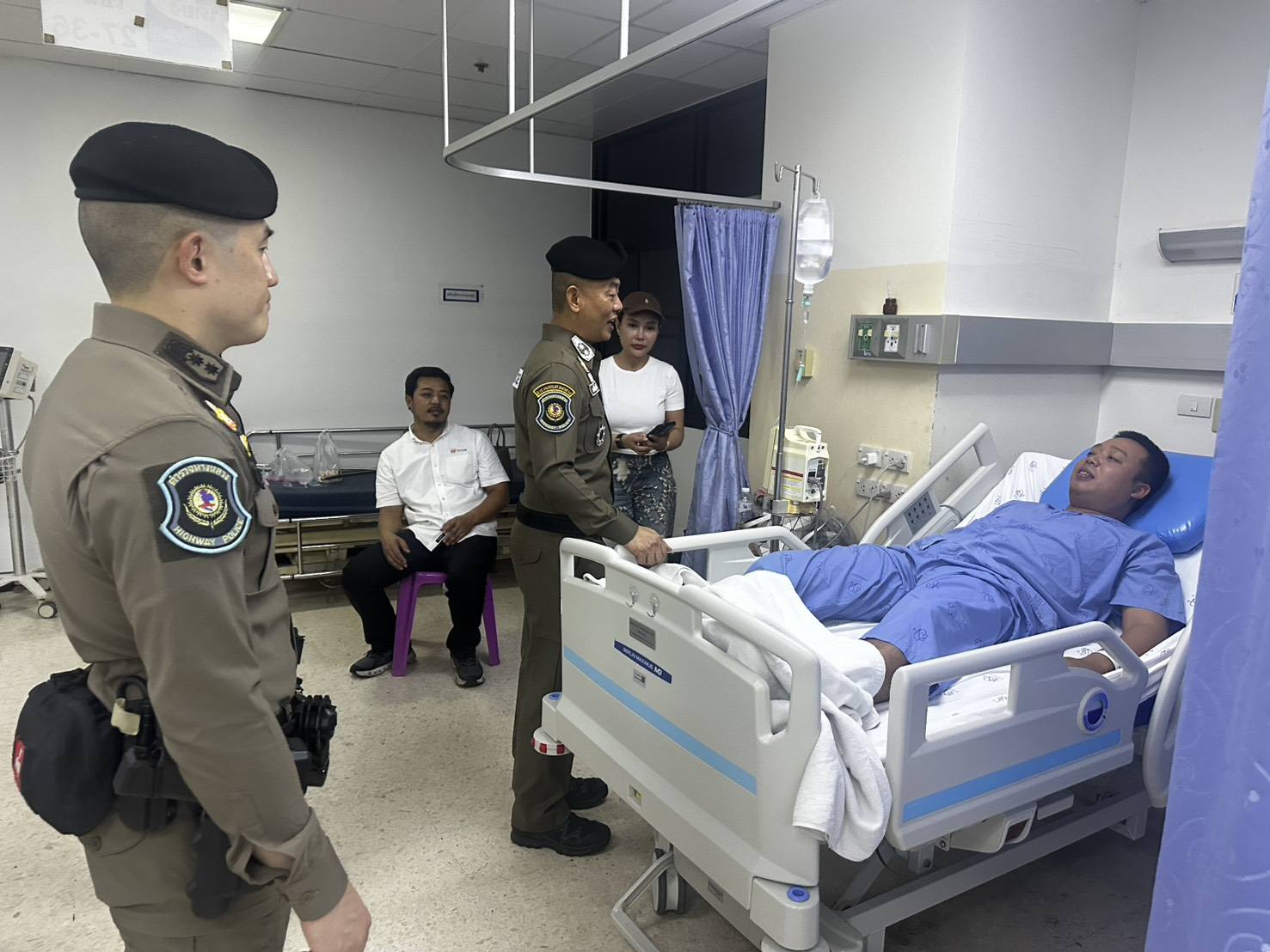 เช่นเดียวกับผู้บังคับการตำรวจทางหลวงได้สอบถามอาการ พร้อมกำชับให้ดูแลรักษาตัวอย่างเต็มที่ และยืนยันจะให้การสนับสนุนด้านสวัสดิการอย่างเต็มกำลัง เพื่อเป็นขวัญและกำลังใจแก่กำลังพลที่ปฏิบัติหน้าที่ด้วยความกล้าหาญ ตำรวจทางหลวงยืนยันเดินหน้าปฏิบัติหน้าที่ดูแลความปลอดภัยพี่น้องประชาชนอย่างเต็มความสามารถต่อไป