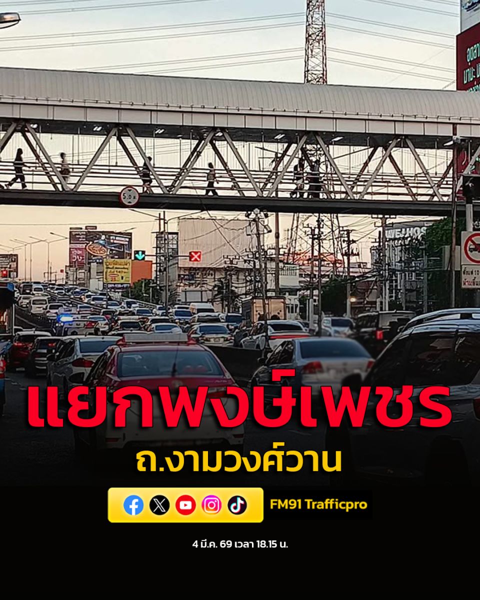 4 มี.ค. 69 เวลา 18.35 น. แยกพงษ์เพชร ถ.งามวงศ์วาน ขาออก มุ่งหน้า แยกแคราย ท้ายอยู่ทางขึ้นอุโมงค์เกษตร กลับกัน ขาเข้า มุ่งหน้า แยกเกษตร ท้ายอยู่ปากซอยชินเขต 2