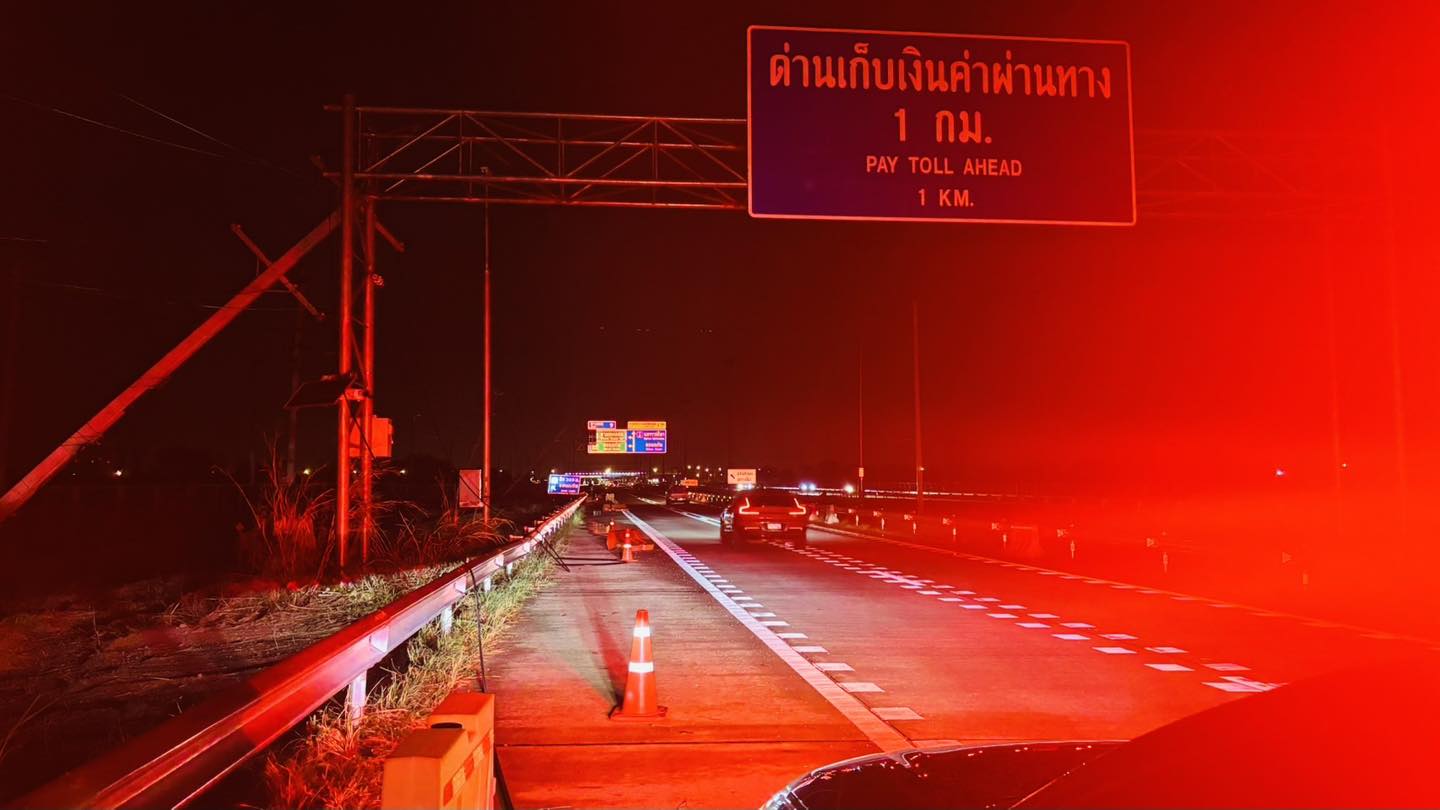 ขณะนี้ ยังไม่กีดขวางการจราจร แต่มีลักษณะเสี่ยงอันตรายต่อผู้ใช้ทาง เจ้าหน้าที่ตำรวจทางหลวง เปิดสัญญาณไฟวับวาบเฝ้าระวังและป้องกันอุบัติเหตุในพื้นที่แล้ว ขอให้ผู้ใช้เส้นทาง M6 ชะลอความเร็ว และใช้ความระมัดระวัง