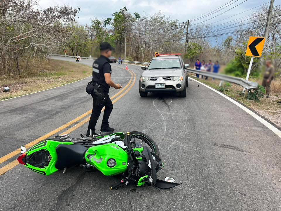 รถจักรยานยนต์กับรถกระบะ ชนกันกลางโค้ง มีผู้เสียชีวิตเป็นเด็กชาย จ.สกลนคร