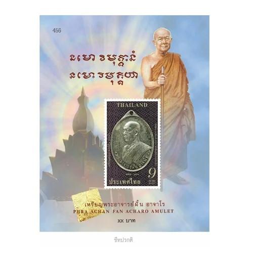 “หลวงปู่ฝั้น อาจาโร” สุดยอดพระเกจิสายวัดป่าที่คนไทยเคารพศรัทธาและยกย่องว่าเป็นหนึ่งในพระอริยสงฆ์ของไทย วัตถุมงคลทุกรุ่นของท่านขึ้นชื่อเรื่องพุทธคุณรอบด้าน โดยเฉพาะแคล้วคลาด ปลอดภัย และเมตตามหานิยม ชื่อเสียงเป็นที่เลื่องลือและได้รับความนิยมอย่างมากในหมู่นักสะสม โดยไปรษณีย์ไทยได้นำภาพเหรียญรุ่นแรกของหลวงปู่ฝั้นที่จัดสร้างเนื่องในงานยกเสาโบสถ์น้ำ วัดป่าอุดมสมพร ซึ่งล้ำค่าและหายากยิ่งในปัจจุบัน มาถ่ายทอดลงบนแสตมป์ ชุดเหรียญพระเกจิอาจารย์ประจำภาคอีสาน ให้กลายเป็นไอเทมมงคลที่ใคร ๆ ก็เป็นเจ้าของได้ เพื่อเก็บสะสมและเสริมสิริมงคลให้ชีวิต