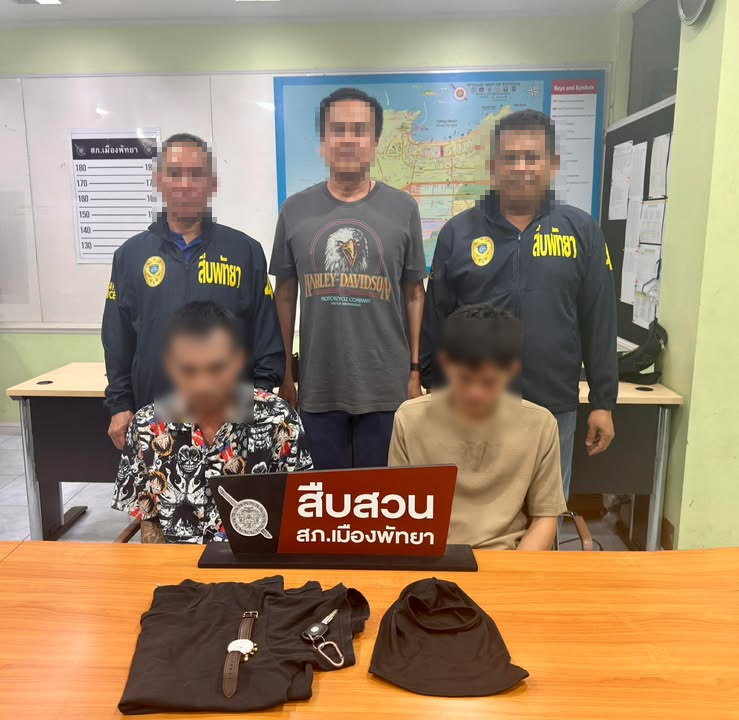 เมื่อวันที่ 9 มีนาคม 2569 เจ้าหน้าที่ตำรวจ สภ.เมืองพัทยา ภายใต้การอำนวยการของ พ.ต.อ.เอนก สระทองอยู่ ผู้กำกับการสถานีตำรวจภูธรเมืองพัทยา พร้อมด้วย พ.ต.ท.อรุษ สภานนท์ รอง ผกก.สส. พ.ต.ท.สุรเดช อิ่มใจ สว.สส.ฯ และ ร.ต.อ.ดอกรัก สายโรจน์ รอง สว.สส.ฯ ได้นำกำลังเจ้าหน้าที่ชุดสืบสวนเข้าจับกุมตัวผู้ต้องหาคดีลักทรัพย์ภายในบ้านพักหรูบริเวณเขาพระตำหนัก เมืองพัทยา ได้จำนวน 2 ราย คือ นายกอ อายุ 26 ปี และนายนอ อายุ 28 ปี (นามสมมุติ) พร้อมตรวจยึดของกลางเป็นรถยนต์เก๋งยี่ห้อ Chevrolet สีดำ ซึ่งใช้เป็นพาหนะในการก่อเหตุและหลบหนี รวมถึงเสื้อผ้าที่ใช้สวมใส่ในวันก่อเหตุ