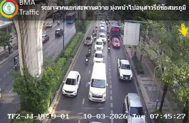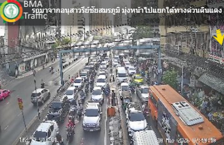 07.45 น. มุ่งหน้าเข้าอนุสาวรีย์ชัยสมรภูมิ ติดขัดทุกด้าน