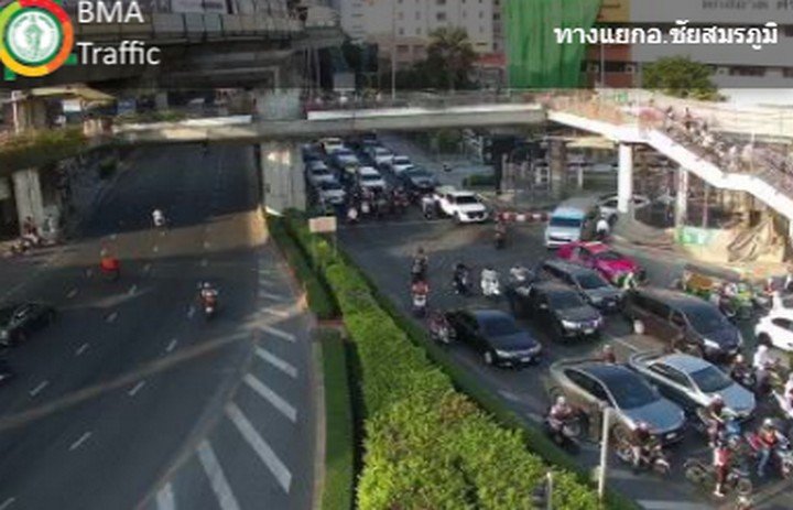 - ถนนวิภาวดีรังสิต ขาเข้า เข้าดินแดง ไปอนุสาวรีย์ชัยฯ ท้ายแถวสะสมสะพานข้ามแยกลาดพร้าว
