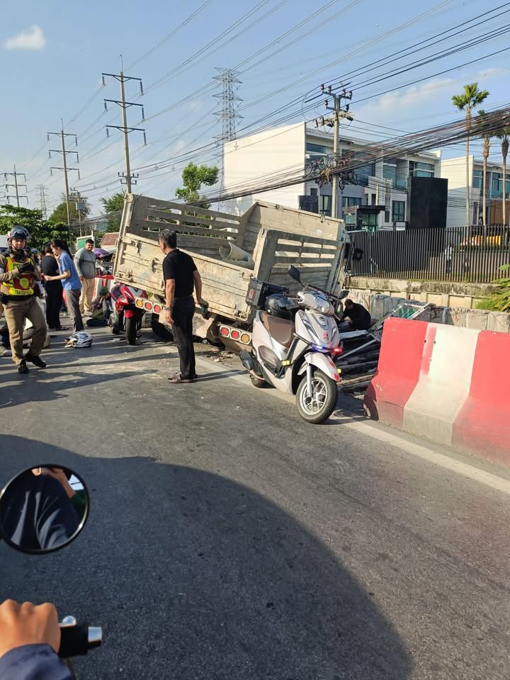 09.02 น. ถนนประชาชื่น ขาออก เยื้องประปานครหลวง สำนักงานใหญ่ อุบัติเหตุ รถบรรทุก ชนกับรถจักรยานยนต์อีกหลายคัน มีผู้ได้รับบาดเจ็บหลายราย ขณะนี้เจ้าหน้าที่กำลังดำเนินการ รถติดหนักมาก #รายงานจราจร #อุบัติเหตุ #รถติด #FM91