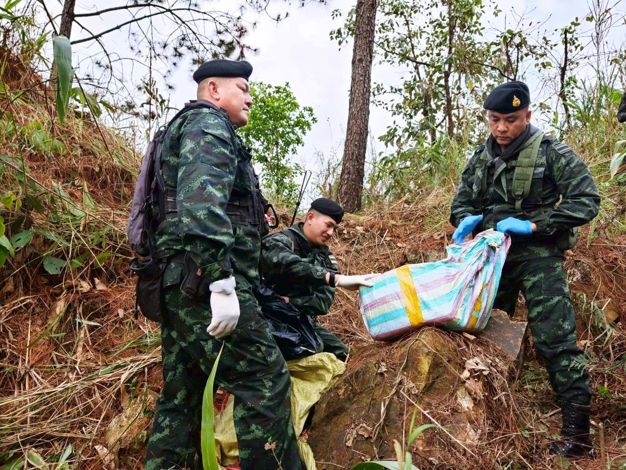 เมื่อวันที่ 11 มีนาคม 2569 เวลา 13.45 นาฬิกา กองร้อยทหารม้าที่ 4 หน่วยเฉพาะกิจไชยานุภาพ จัดกำลัง 1 ชุดปฏิบัติการ ทำการลาดตระเวนเฝ้าตรวจ เพื่อป้องกัน และสกัดกั้นการกระทำผิด ตามพระราชบัญญัติให้ใช้ ประมวลกฎหมายยาเสพติด พ.ศ. 2564 บริเวณช่องทางเขาหัวโล้น บ้านหนองเต่า (บริวาร บ้านม่วงชุม) หมู่ 10 ตำบลม่อนปิ่น อำเภอฝาง จังหวัดเชียงใหม่ ตรวจพบกลุ่มบุคคลต้องสงสัย ประมาณ 3 – 5 คน สะพายกระสอบดัดแปลงเป็นเป้สะพายหลัง เดินมาตามเส้นทางในภูมิประเทศ หน่วยจึงให้สัญญาณเพื่อขอตรวจค้น แต่กลุ่มบุคคลดังกล่าวได้ใช้อาวุธปืนไม่ทราบชนิด และขนาดยิงใส่ฝ่ายเรา จึงเกิดการปะทะกัน ประมาณ 5 นาที ผลการปะทะ ฝ่ายเราปลอดภัย หน่วยจึงได้จัดกำลังเพิ่มเติม 2 ชุดปฏิบัติการ ร่วมกับ ชุดปฏิบัติการโดรน และ ชุดสุนัขตรวจค้นยาเสพติด เข้าวางกำลังควบคุม