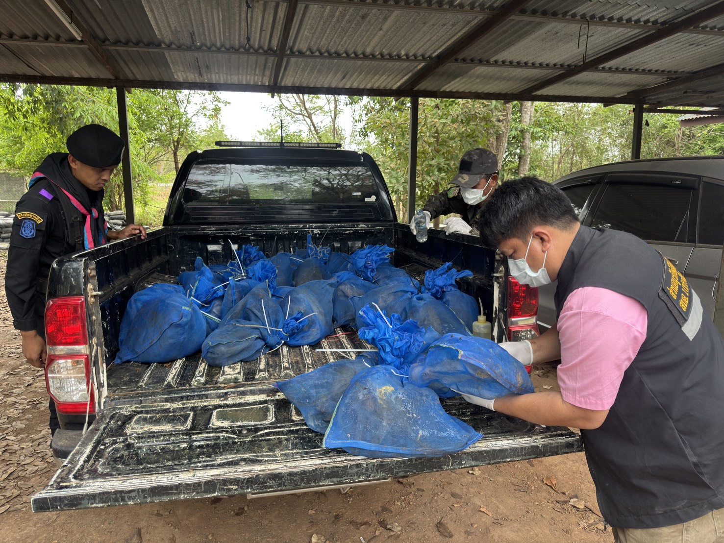 เมื่อตรวจสอบพบว่า ภายในถุงเป็นลิงแสมสภาพอิดโรย ถูกยัดรวมกันอยู่จำนวน 51 ตัว แบ่งเป็นเพศผู้ 32 ตัว และเพศเมีย 19 ตัว โดยไม่พบผู้กระทำความผิดในพื้นที่ คาดว่ากลุ่มขบวนการค้าสัตว์ป่านำลิงมาพักไว้เพื่อรอลักลอบขนข้ามแดนไปยังประเทศเพื่อนบ้าน แต่เมื่อเห็นเจ้าหน้าที่ลาดตระเวนจึงทิ้งของกลางและหลบหนีไป