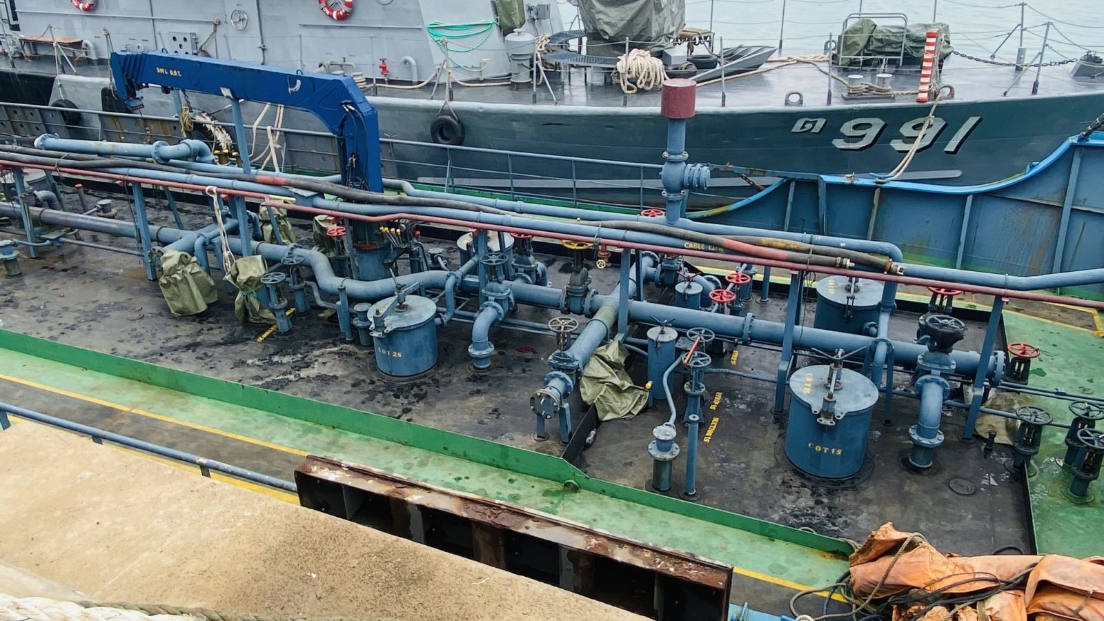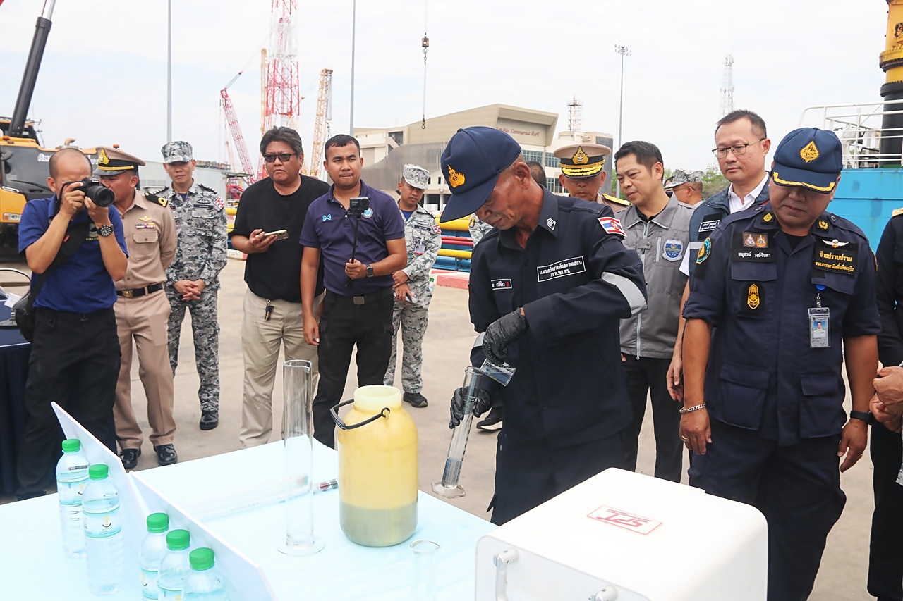ผลการตรวจสอบเบื้องต้น พบของเหลวภายในระวางบรรทุก มีลักษณะคล้ายน้ำมันดีเซล และไม่สามารถระบุที่มาของน้ำมันได้ เจ้าหน้าที่จึงได้เก็บตัวอย่างน้ำมันส่งให้กลุ่มวิเคราะห์สินค้าและของกลาง กรมสรรพสามิต เพื่อดำเนินการตรวจพิสูจน์ตามขั้นตอน โดยจากการตรวจวัดปริมาณน้ำมันเบื้องต้นพบว่า มีปริมาณประมาณ 250,000 ลิตร