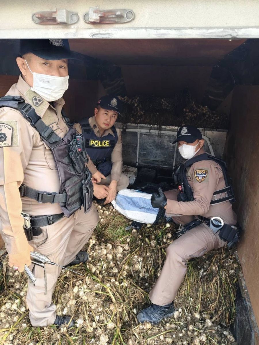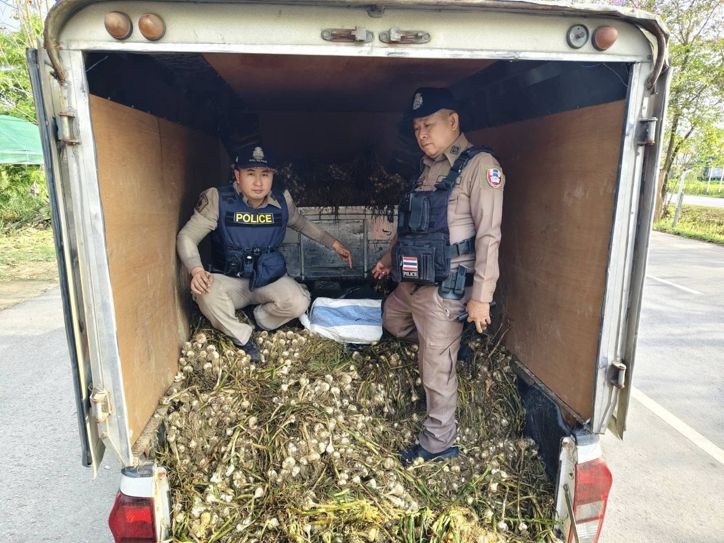 สกัดจับกระบะตู้ทึบ ยึดยาบ้า 2 ล้านเม็ด ซุกใต้กองกระเทียมหวังกลบกลิ่นกลางด่าน