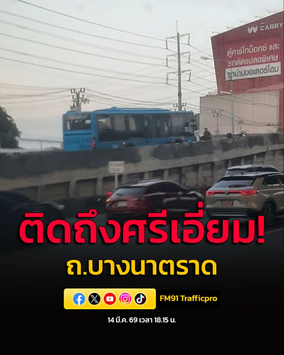 14 มี.ค. 69 เวลา 18.35 น. ถ.บางนาตราด ขาออก เชิงทางขึ้นสะพานกลับรถเมกา บางนา (กม.8)