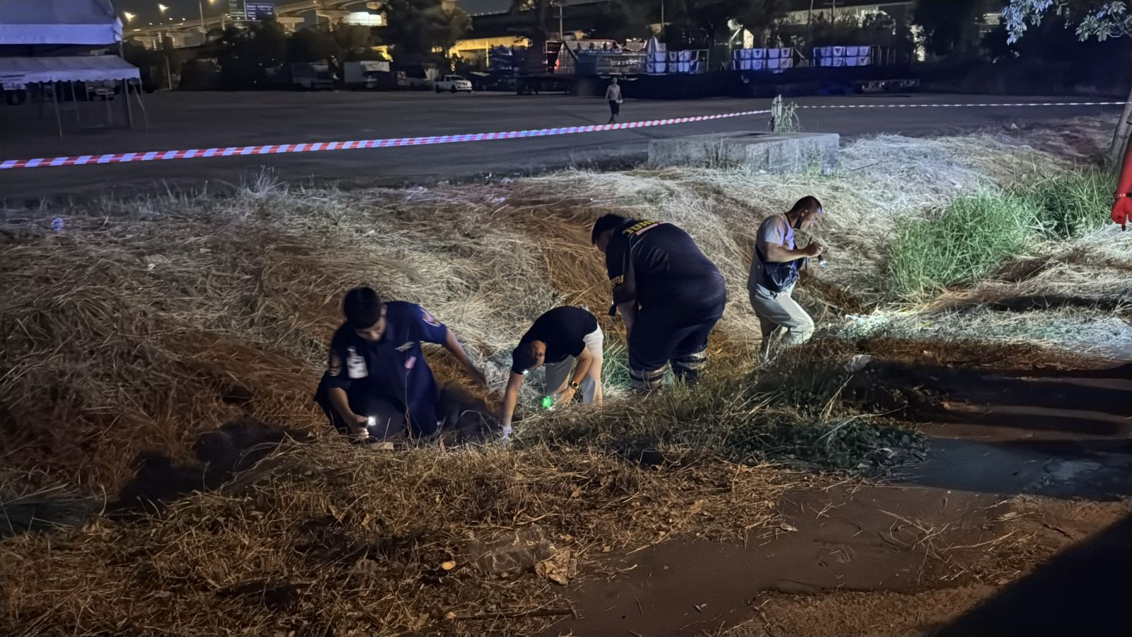จากการลงพื้นที่ตรวจสอบในจุดเกิด พบว่า เจ้าหน้าที่ตำรวจขุดสืบสวนได้วิ่งไล่รถเก๋งของผู้ต้องสงสัยมาจากตึก C 7 ก่อนจะวิ่งตามมาถึงตึก C 1 จนเกิดการรัวยิงกันหลายนัด ทำให้กระสุนปืนไปถูกรถของชาวบ้านที่จอดข้างอาคารจนได้รับความเสียหายถึง 3 คัน จากนั้นผู้ต้องสงสัยได้ขับรถเก๋งหลบหนีเลี้ยวซ้ายผ่านหน้าธนาคารกสิกร ก่อนจะผ่านหน้าอาคารอิมแพ็คเมืองทองธานี มุ่งไปทางวงเวียนพร้อมกับโยนวัตถุต้องสงสัยทิ้งออกมานอกรถ ก่อนจะไปถูกเจ้าหน้าตำรวจสกัดจับเอาไว้ได้ที่บริเวณหน้าตลาดอัศวิน ปากทางออกถนนติวานนท์
