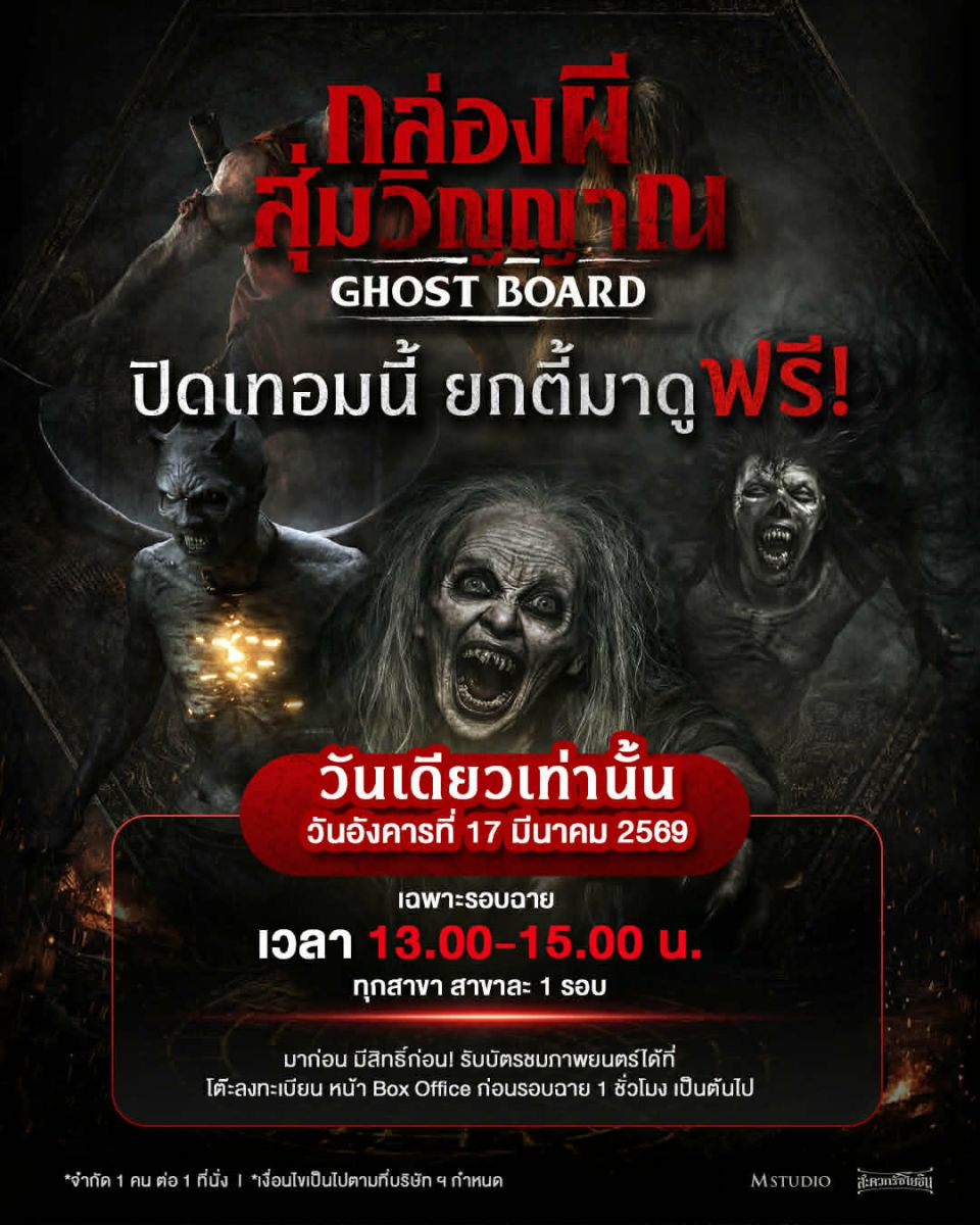 มาก่อน มีสิทธิ์ก่อน! รับบัตรชมภาพยนตร์ได้ที่โต๊ะลงทะเบียนหน้า Box Office ก่อนรอบฉาย 1 ชั่วโมง เป็นต้นไป