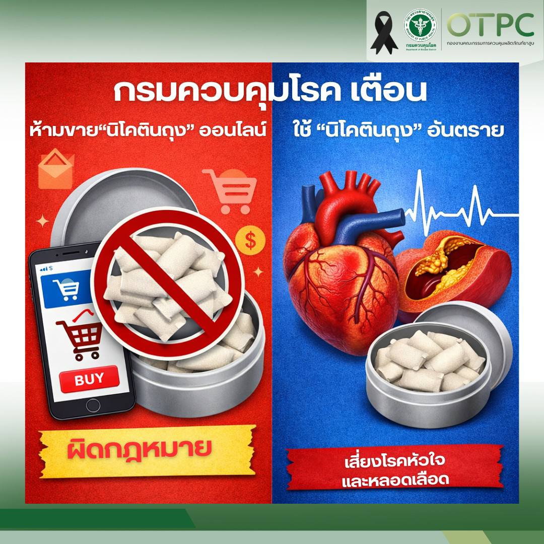 วันนี้ (21 มีนาคม 2569) นายแพทย์เอนก มุ่งอ้อมกลาง รองอธิบดีกรมควบคุมโรค เปิดเผยว่า เมื่อวันที่ 17 มีนาคม 2569 ได้มอบหมายให้พนักงานเจ้าหน้าที่ดำเนินคดีกล่าวโทษผู้กระทำความผิดกรณีจำหน่ายผลิตภัณฑ์ยาสูบประเภท “นิโคตินถุง” ผ่านช่องทางออนไลน์ ต่อพนักงานสอบสวน สถานีตำรวจภูธรเมืองนนทบุรี ภายหลังจากการเฝ้าระวังพบการจำหน่ายและโฆษณาผ่านสื่ออิเล็กทรอนิกส์ และขยายผลพบมีหน้าร้านในพื้นที่จังหวัดปทุมธานี