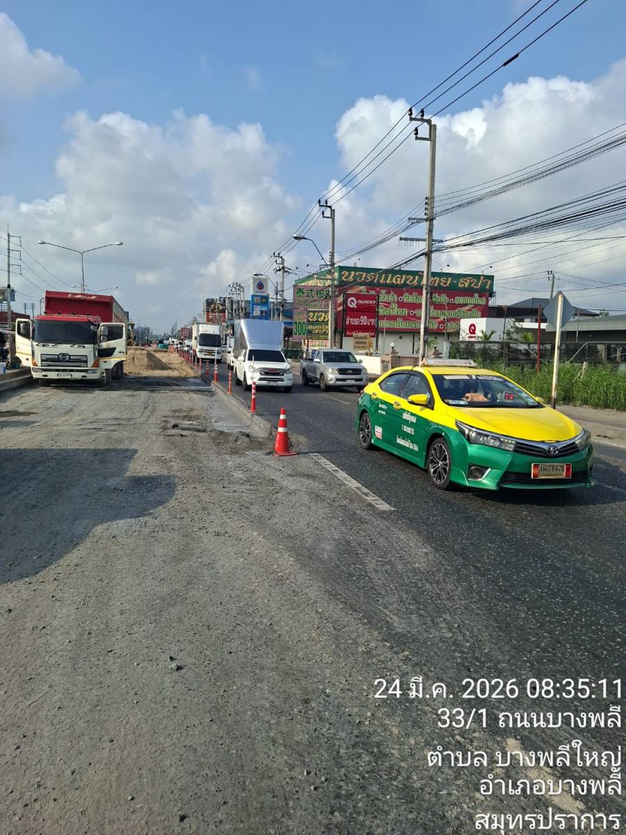 วันนี้ (24 มี.ค.69) ถนนกิ่งแก้ว จากแยกคลองขุด ถนนเทพารักษ์ มุ่งหน้า ถนนบางนา-ตราด บริเวณจุดกลับรถปั๊ม ปตท.บางพลี มีการซ่อม - สร้าง ผิวการจราจร