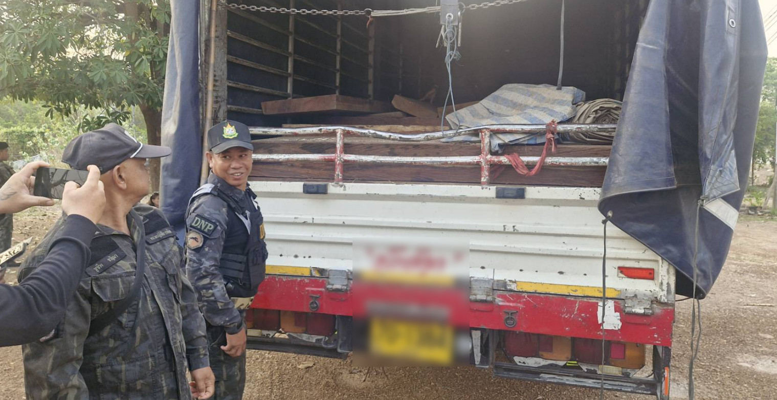 ต่อมาเจ้าหน้าที่ได้ขยายผลติดตามรถบรรทุกต้องสงสัย หมายเลขทะเบียน จ.น่าน ซึ่งมีความเชื่อมโยงกับโกดังเก็บไม้ จนกระทั่งวันที่ 23 มีนาคม 2569 ได้รับแจ้งจากสายลับว่ารถคันดังกล่าวปรากฏในพื้นที่อำเภอแม่สอด จังหวัดตาก และมีการลำเลียงไม้ประดู่แปรรูปขึ้นเต็มคันรถ