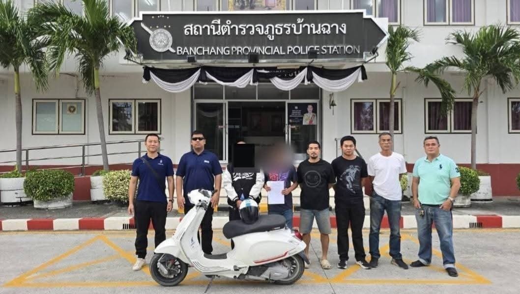 24 มี.ค.69 พ.ต.อ.ชัยพงษ์ แสงพงษ์ชัย ผกก.สภ.นิคมพัฒนา พร้อมด้วย พ.ต.อ.ทนงศักดิ์ คำมาตย์ ผกก.สภ.บ้านฉาง พ.ต.ท.ฐปณัธ ชญาณพัฒน์ รอง ผกก.สส.สภ.นิคมพัฒนา และ พ.ต.ท.รัฐศาสตร์ แสนศรี สว.สส.สภ.นิคมพัฒนา ได้นำกำลังชุดสืบสวนลงพื้นที่ติดตามจับกุม นายบอ (นามสมมุติ) อายุ 43 ปี พร้อมของกลาง รถจักรยานยนต์ เวสป้า สีขาว ไม่ติดแผ่นป้ายทะเบียน 1 คัน เสื้อคลุมแขนยาวสีดำ-ขาว 1 ตัว และหมวกกันน็อกสีขาวคาดน้ำเงิน 1 ใบ