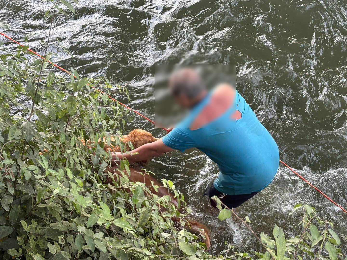 ใช้เวลาไม่นาน สามารถช่วยทั้งชายและสุนัขขึ้นมาได้อย่างปลอดภัย ท่ามกลางความโล่งใจของชาวบ้านที่อยู่ในเหตุการณ์