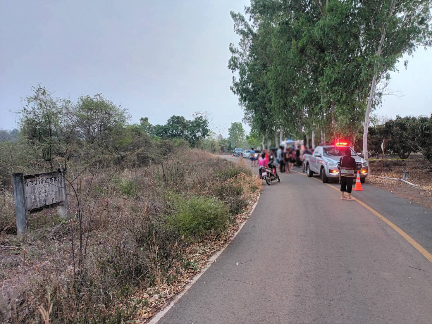 ที่เกิดเหตุ พบรถจักรยานยนต์ ฮอนด้า สกูปปี้ สีดำป้ายทะเบียน น่าน ล้มอยู่ข้างต้นไม้ สภาพรถพังเสียหาย ใกล้กันพบร่างของผู้ขับขี่ เป็นหญิงไทย อายุ 45 ปี นอนเสียชีวิตคล่อมรถ