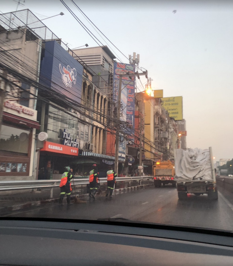 เจ้าหน้าที่ทำความสะอาดผิวการจราจร! ถนนงามวงศ์วาน ขาออก ตรงข้าม ม.เกษตรฯ ในช่องทางซ้าย ตามหลังมาโปรดระวัง #รายงานจราจร #รถติด #FM91