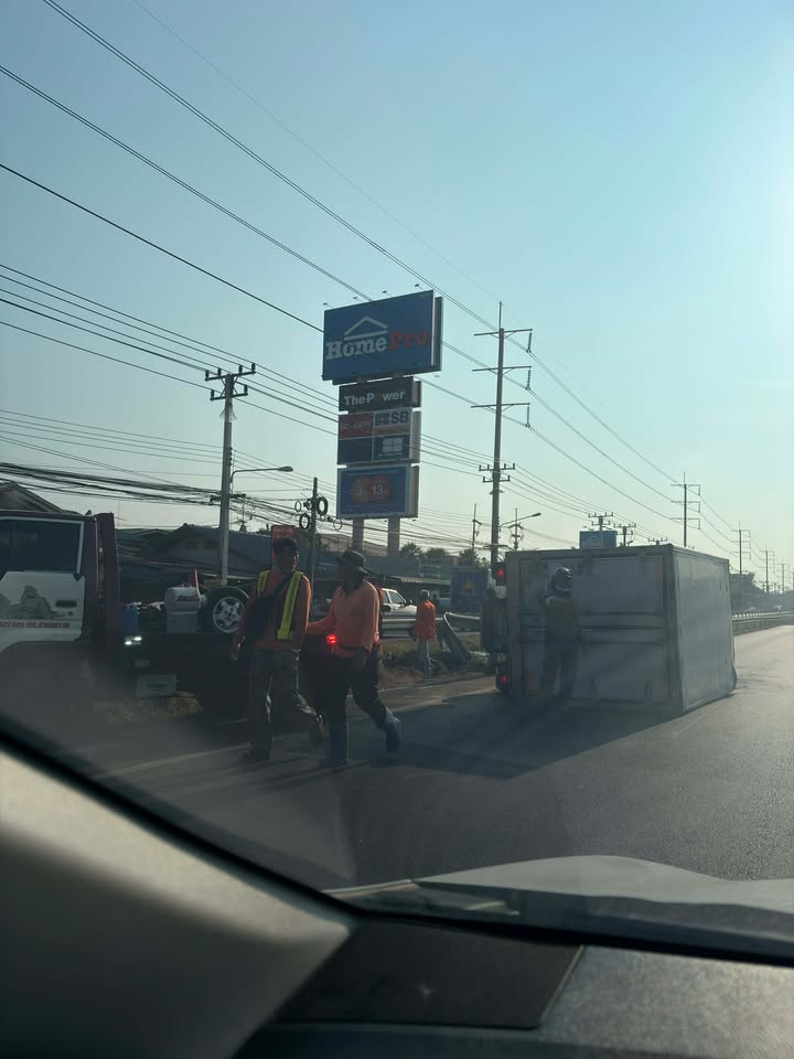 08.12 น.ถนนบรมราชชนนี ขาเข้า หน้าโฮมโปร พุทธมณฑล สาย 5 อุบัติเหตุ รถบรรทุกเสียหลักพลิกตะแคง ในช่องทางหลัก กีดขวาง 2 ช่องทางซ้าย รถยกมาแล้ว กำลังดำเนินการเคลื่อนย้าย รถติดมาก ท้ายแถวสะสมหน้าเซ็นทรัล ศาลายา #รายงานจราจร #รถติด #อุบัติเหตุ #FM91
