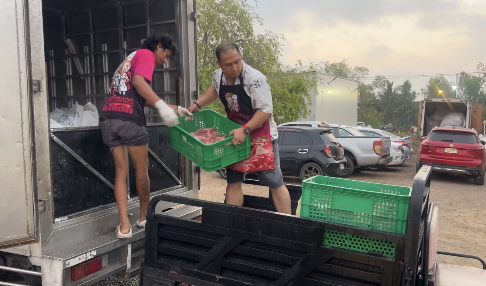 เมื่อวันที่ 28 มีนาคม 2569 ผู้สื่อข่าวรายงานว่า หลังจากที่ พ.ต.อ.เทวกฤต มณีรัตน์ หรือผู้กำกับเม ตำแหน่ง ผกก.(สอบสวน) กลุ่มงานสอบสวน ภ.จว.นนทบุรี โดยวันหยุดราชการ ได้สลัดคราบถอดชุดตำรวจสวมชุดพ่อค้าขายหมู ผูกเอี๊ยม ยืนขายหมูอยู่ที่ร้านไอกี้ หมูถูกดีจัง ซึ่งเป็นร้านของภรรยาสุดสวย ตั้งอยู่ที่ตลาดพี่ญาคนรุม ต.คลองสาม อ.คลองหลวง จ.ปทุมธานี เปิดให้บริการทุกวันตั้งแต่เวลา 05.30 น. ไปจนถึงเวลา 15.00 น.ภายในร้านจะมีทั้งชิ้นส่วนหมูสด-ไก่สด ให้เลือกซื้อมากมาย เฉลี่ยขายวันละประมาณ 4 ตัน ถือว่าเป็นธุรกิจหลักที่สร้างรายได้จุนเจือครอบครัว และเลี้ยงดูลูกน้องในร้านอีกนับ 10 ชีวิต