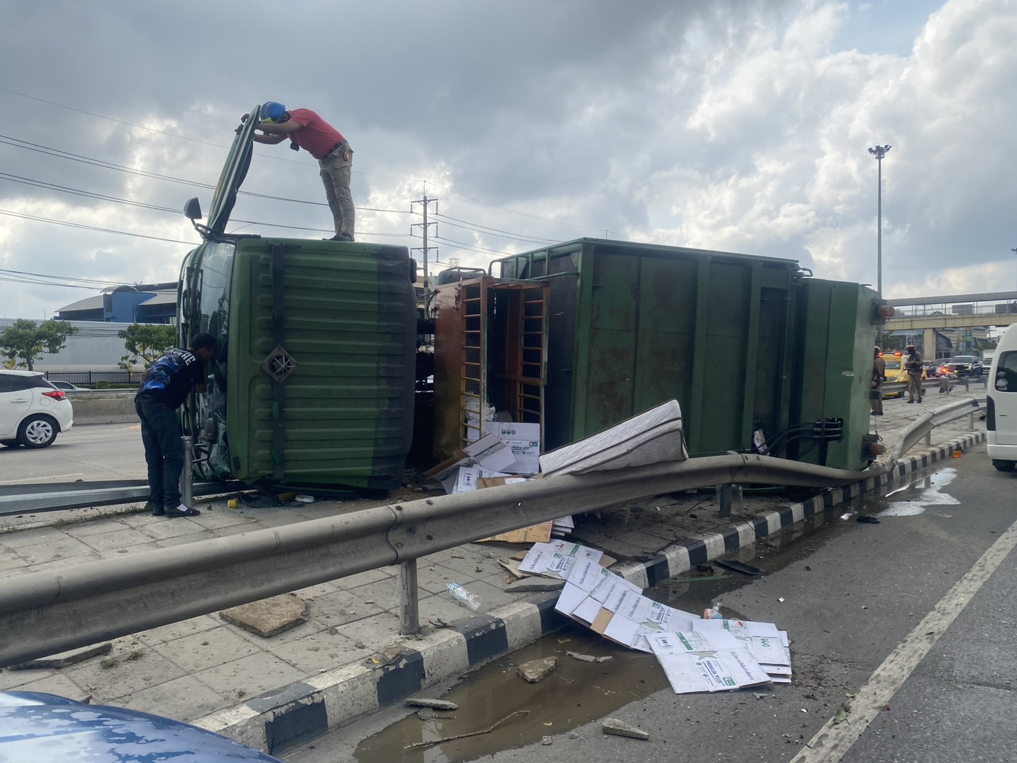 10.00 น. รถขยะพลิกตะแคง! ถนนกาญจนาภิเษก ขาออก ก่อนถึงต่างระดับบางแค (เพชรเกษม) อุบัติเหตุ รถขยะเสียหลักพลิกตะแคง อยู่บนเกาะกลาง ระหว่างช่องทางหลัก กับคู่ขนาน อยู่ระหว่างดำเนินการเคลื่อนย้าย รถติดมาก ท้ายอยู่ใต้ต่างระดับกัลปพฤกษ์ #รายงานจราจร #รถติด #อุบัติเหตุ #FM91