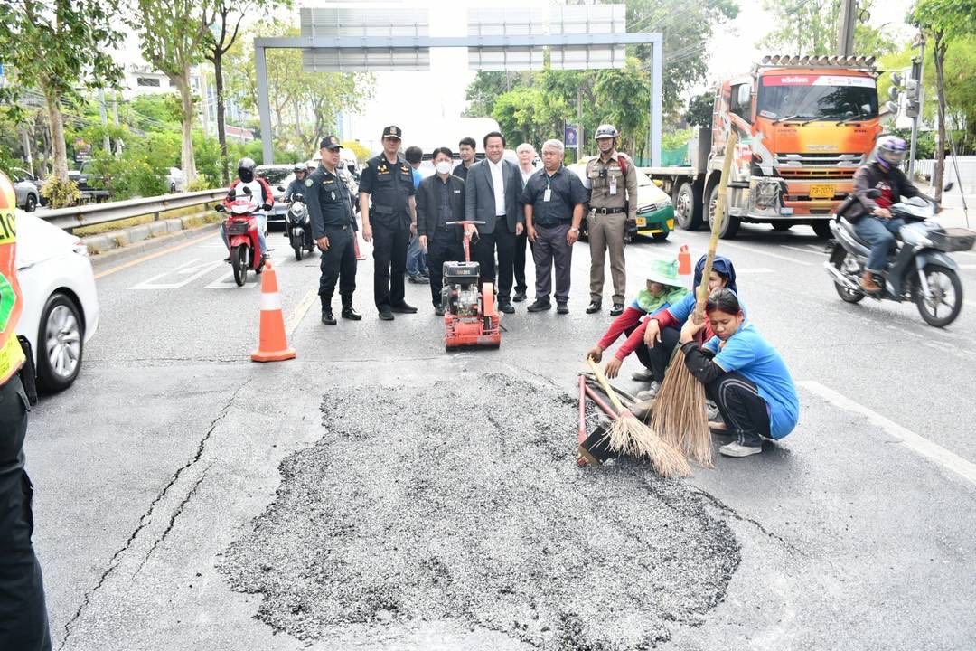 เบื้องต้นได้ประสานสำนักการโยธาเข้าดำเนินการแก้ไข โดยทำการลงแอสฟัลต์ปรับผิวถนนให้กลับมาใช้งานได้ตามปกติ