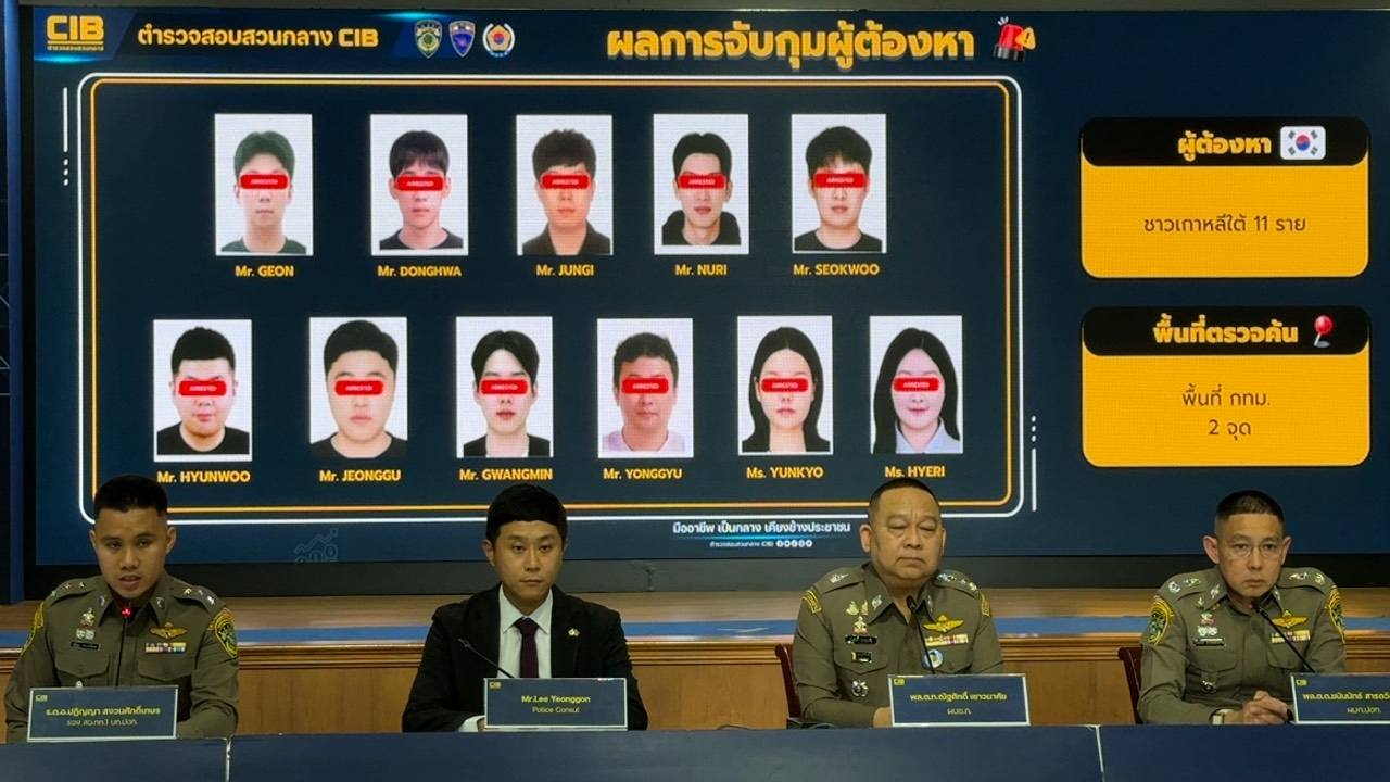 30 มี.ค.2569 พล.ต.ท.ณัฐศักดิ์ เชาวนาศัย ผบช.ก. พร้อมด้วย บก.ปอท., เจ้าหน้าที่แผนกกงสุลตำรวจสถานเอกอัครราชทูตสาธารณรัฐเกาหลีประจำประเทศไทย และ เจ้าหน้าที่ตำรวจ กก.สืบสวน บก.ตม.1 แถลงข่าวร่วมกันจับกุมผู้ต้องหาชาวเกาหลีใต้ จำนวน 11 ราย โดยแจ้งข้อหา “เป็นคนต่างด้าวทำงานโดยไม่มีใบอนุญาตทำงาน” หลังจากศูนย์ปราบปรามอาชญากรรมทางเทคโนโลยีสารสนเทศ สำนักงานตำรวจแห่งชาติ (ศปอส.ตร.) มีการจัดตั้ง War room ACSC โดยมีการประสานงานร่วมกับฝ่ายต่างประเทศเพื่อแลกเปลี่ยนข้อมูลข่าวสาร รวมถึงให้ความร่วมมือในการสืบสวนและปราบปรามอาชญากรรมข้ามชาติ โดยเฉพาะขบวนการคอลเซ็นเตอร์ที่มีความเชื่อมโยงระหว่างประเทศ