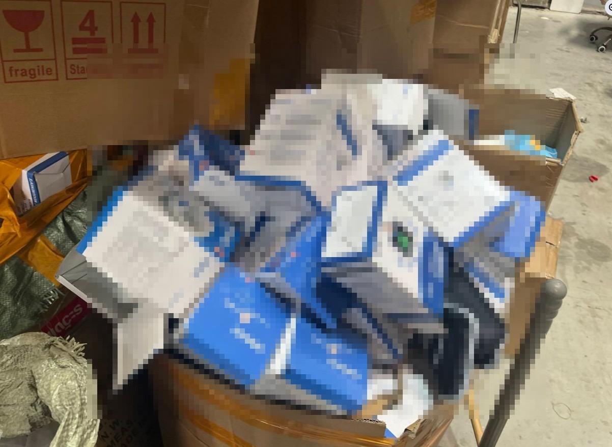 พร้อมตรวจยึดของกลาง เครื่องวัดความดันเลือด ที่ปลอมเครื่องหมายการค้า รวม 1,120 เครื่อง มูลค่าความเสียหาย 2,240,000 บาท