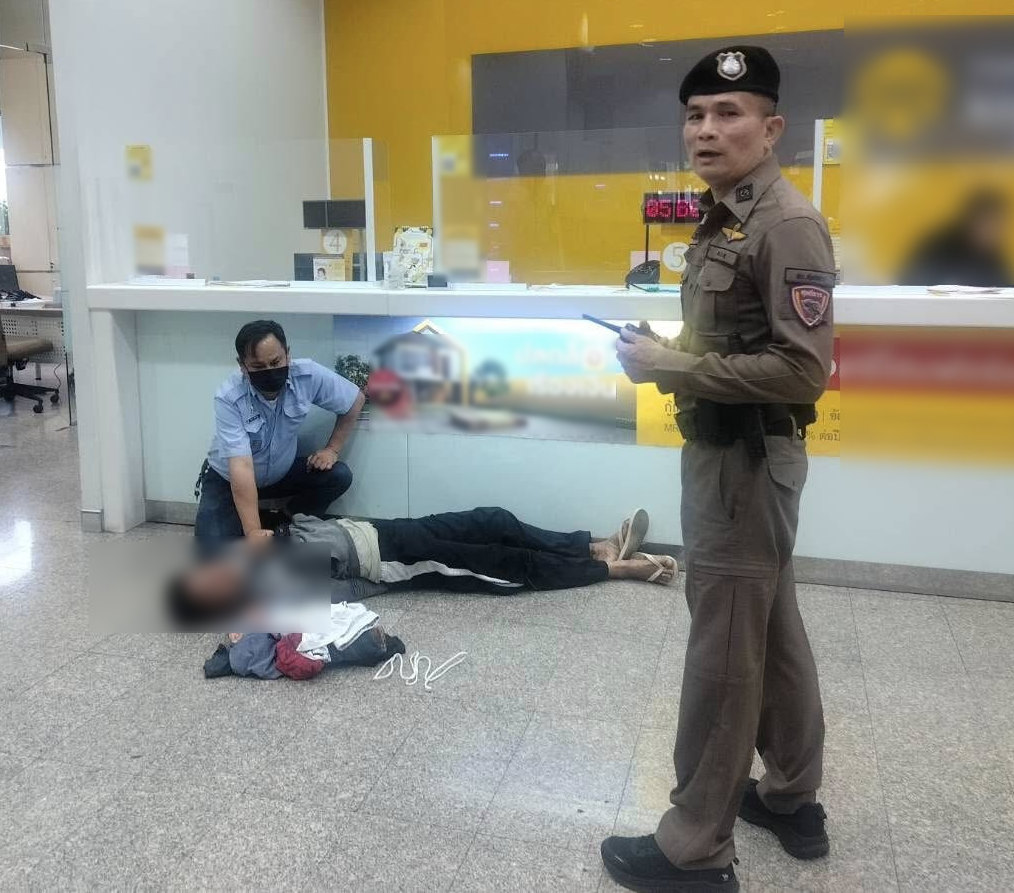หนุ่มตกงานคลั่ง คว้าคัตเตอร์บุกเดี่ยวจี้แบงก์ ย่านรัชดาฯ รปภ.ฮีโร่ โดดเข้าชาร์จรวบทันควัน แจ้งตำรวจมารับตัว