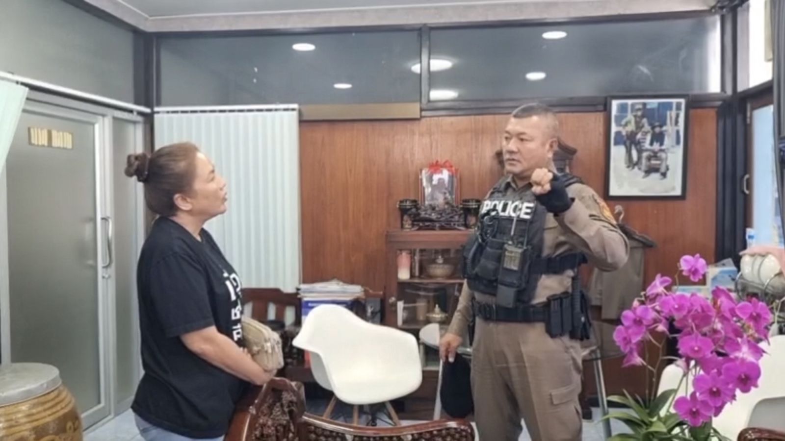 ด.ต.ศิกวัส กล่าวต่อว่า ตนจึงให้ชาวบ้านใช้แอพสอบถามชายชาวจีนว่าต้องการให้ช่วยเหลืออย่างไร ซึ่งชายชาวจีนแจ้งว่าต้องการไปสถานฑูตจีนเพื่อต้องการกลับบ้าน ตนจึงนำตัวชาวจีนมาที่สถานีตำรวจเพื่อพบพนักงานสอบสวนเพื่อดำเนินการ แต่ชายชาวจีนยืนยันที่จะไปสถานฑูตจีนอย่างเดียว ทางตำรวจแจ้งให้รอถึงเช้า แต่ชาวจีนไม่ยินยอมที่จะรอ อยากเดินทางไปตอนนั้นเลย ทางตำรวจจึงดำเนินการส่งขึ้นรถไปสถานฑูตจีนให้ จากการสอบถามชายชาวจีนทราบว่า เขาถูกเพื่อนชาวจีนหลอกมาทำงานที่กัมพูชา แต่เขาเอะใจหลบหนีออกมาก่อน ตอนที่พบตัวสภาพอ่อนแรง เหนื่อย มีเหงื่อออก และสะพายเป้ 1 ใบ ตรวจสอบภายในพบมีผ้าเช็ดตัว บุหรี่ ไฟแช็ค และโทรศัพท์มือถือ 2 เครื่อง แต่ใช้ได้เพียงเครื่องเดียว ส่วนพาสปอร์ตนั้นถูกยึดไป