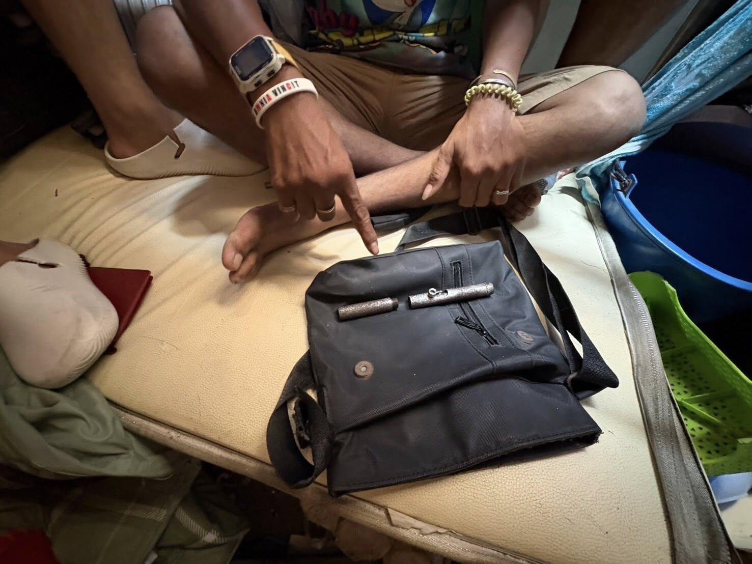 เมื่อไปถึงบริเวณดังกล่าว พบชายต้องสงสัยมีลักษณะตรงตามที่ได้รับแจ้ง ยืนอยู่บริเวณหน้าเพิงพักและมีท่าทางลุกลี้ลุกลน เจ้าหน้าที่จึงแสดงตัวเป็นตำรวจและขอตรวจค้น โดยชายดังกล่าวยินยอมให้ตรวจค้น จากการตรวจค้นตัวไม่พบสิ่งผิดกฎหมาย แต่เมื่อทำการตรวจค้นกระเป๋าสะพายสีดำที่วางอยู่ข้างตัว พบ อาวุธปืนไทยประดิษฐ์ (ปืนปากกา) จำนวน 1 กระบอก ซุกซ่อนอยู่ภายใน