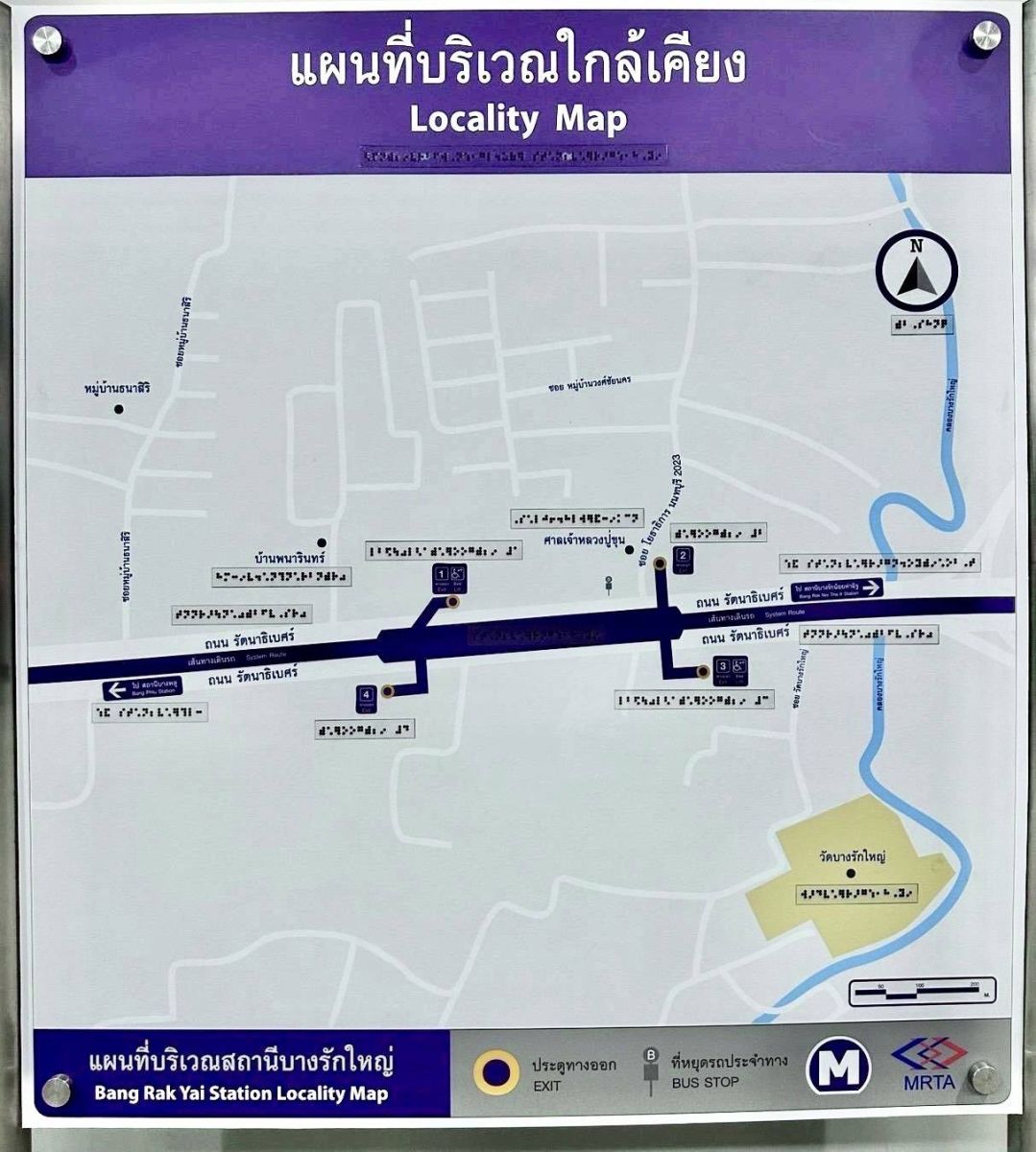ตามที่ การรถไฟฟ้าขนส่งมวลชนแห่งประเทศไทย (รฟม.) ร่วมกับ สมาคมคนตาบอดแห่งประเทศไทยพัฒนาการจัดทำแผนที่การเดินทางสำหรับคนพิการทางการเห็นภายในสถานีรถไฟฟ้ามหานคร สายฉลองรัชธรรม (MRT สายสีม่วง) เพื่ออำนวยความสะดวกและตอบสนองความต้องการของผู้ใช้บริการรถไฟฟ้าที่เป็นคนพิการทางการเห็น โดย รฟม. ได้มีการนำข้อเสนอแนะจากสมาคมคนตาบอดฯ ให้ผู้รับสัมปทาน บริษัท ทางด่วนและรถไฟฟ้ากรุงเทพ จำกัด (มหาชน) (BEM) ไปดำเนินการปรับปรุงและเร่งรัดการติดตั้งให้ครบทั้ง 16 สถานี นั้น