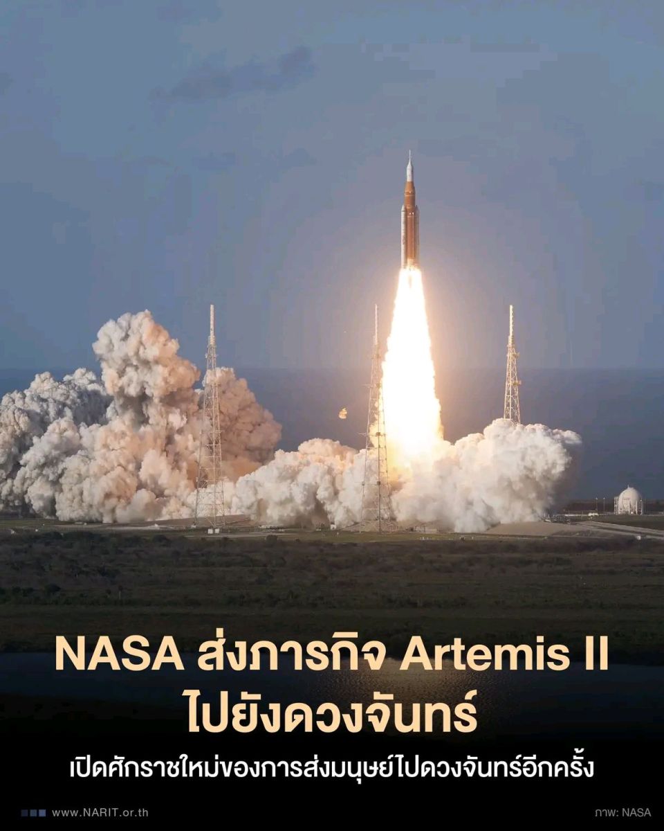 เช้าวันที่ 2 เมษายน 2026 เวลา 05:35 น. (ตามเวลาประเทศไทย) จรวด Space Launch System (SLS) ภายใต้ภารกิจ Artemis II ทะยานขึ้นจากฐานปล่อยจรวด ณ Kennedy Space Center บรรทุกนักบินอวกาศ 4 ราย ได้แก่ Reid Wiseman, Victor Glover, Christina Koch และ Jeremy Hansen ในภารกิจนำนักบินอวกาศไปโคจรรอบดวงจันทร์ นับเป็นการกลับไปเยือนวงโคจรดวงจันทร์ครั้งแรกของมนุษย์ในรอบ 53 ปี