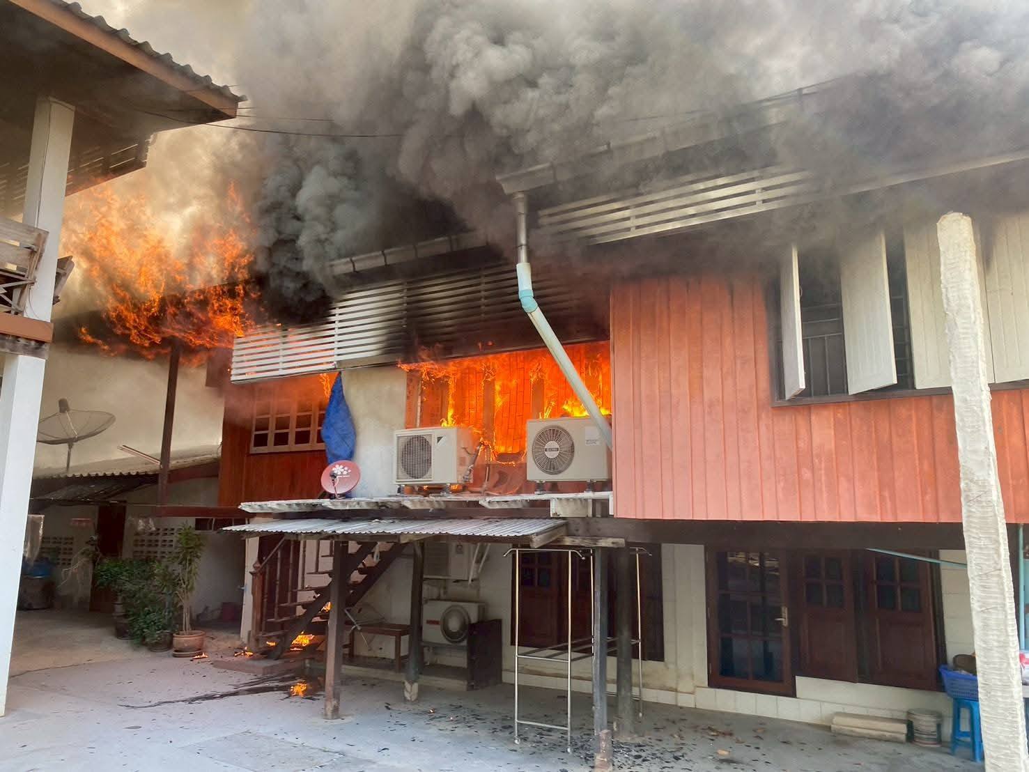 ที่เกิดเหตุ เป็นบ้าน 2 ชั้น ลักษณะครึ่งปูนครึ่งไม้ พบเพลิงกำลังลุกไหม้บริเวณชั้น 2 เจ้าหน้าที่จึงช่วยกันฉีดน้ำสกัดเพลิงไม่ให้ไฟลุกลามไปบ้านข้างเคียง ใช้เวลา 50 นาที สามารถควบคุมเพลิงไว้ได้ เบื้องต้นเสียหายทั้งหลัง