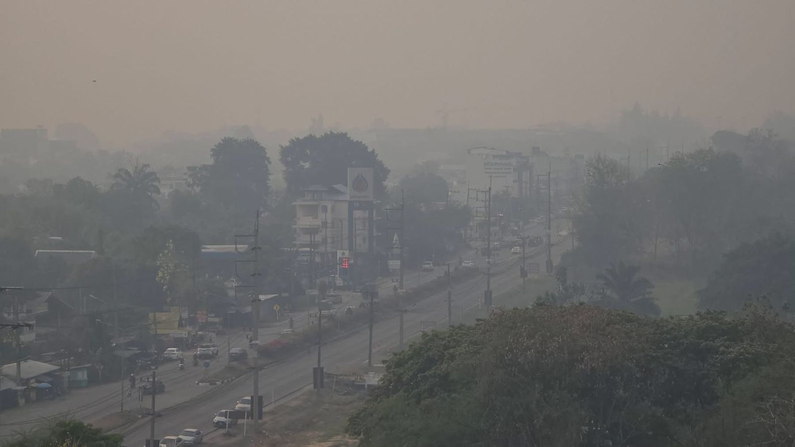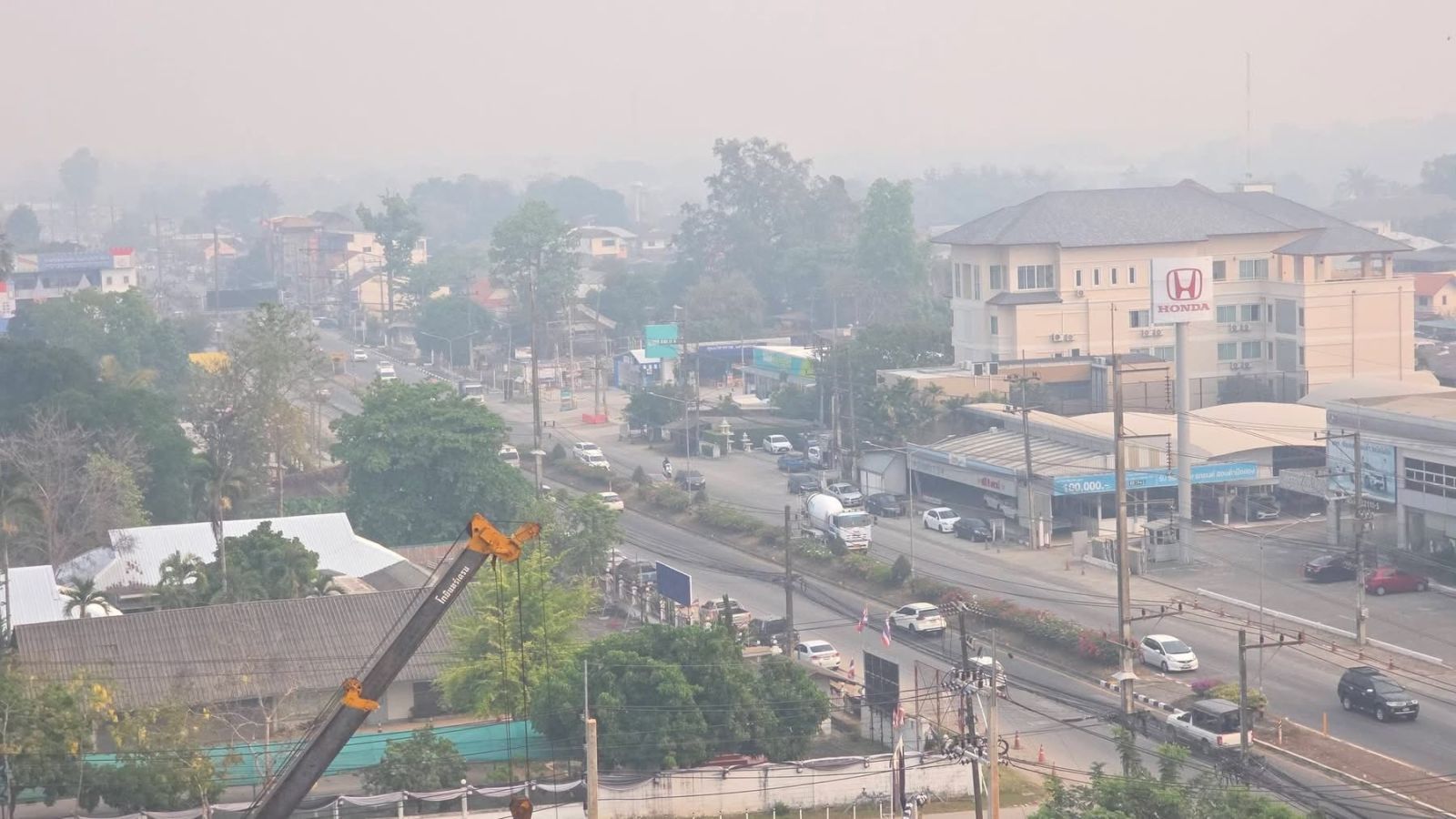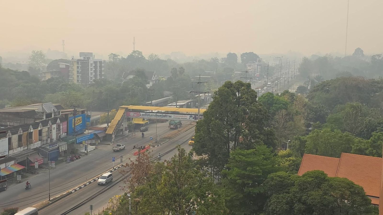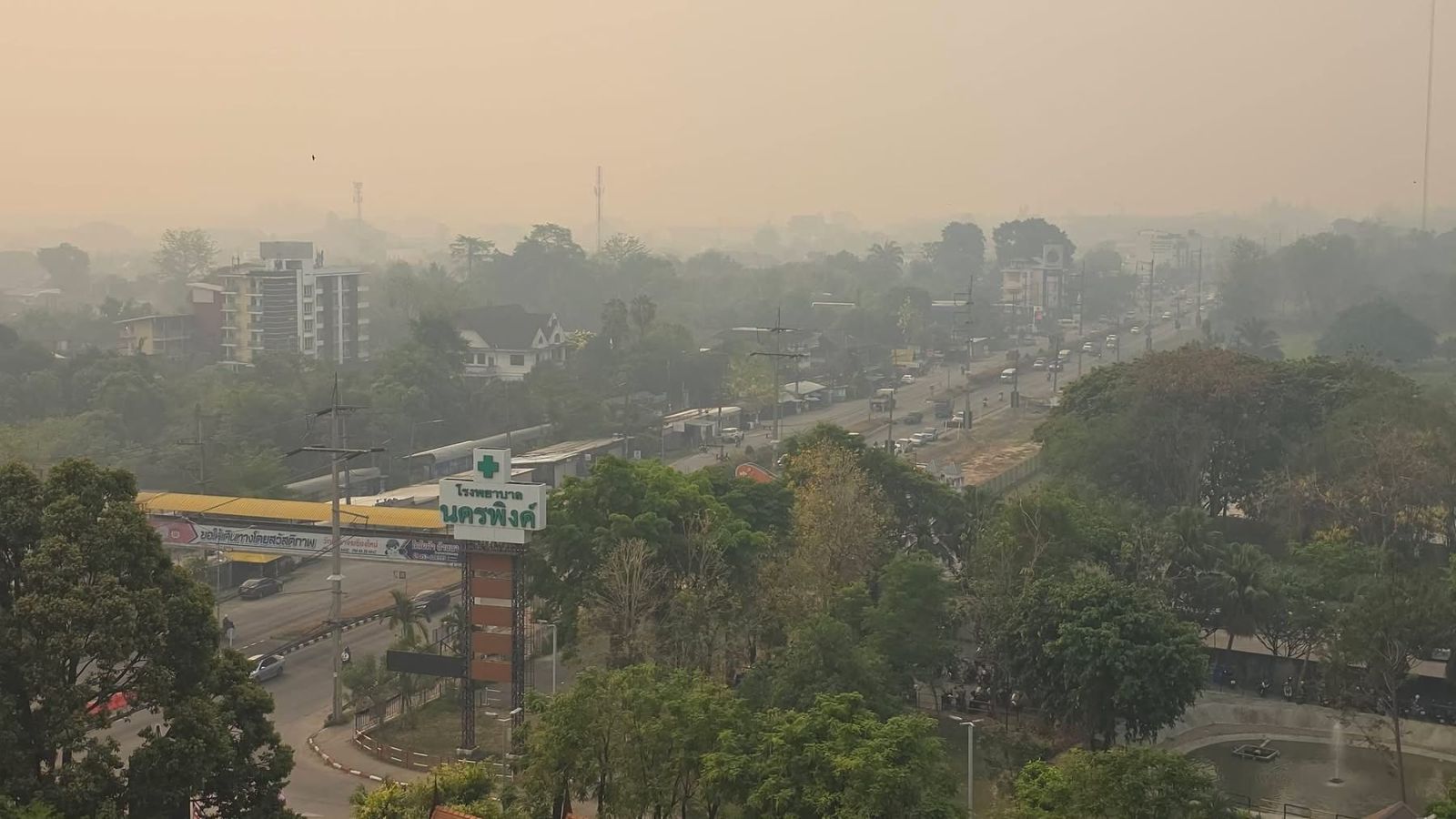 4 เมษายน 2569 เวลา 09.00 น. สถานการณ์ฝุ่นควัน PM2.5 ในจังหวัดเชียงใหม่ยังคงวิกฤตต่อเนื่อง ภาพฝุ่นควันปกคลุมหนาทึบบริเวณโดยรอบโรงพยาบาลนครพิงค์ จนทัศนวิสัยลดลงอย่างเห็นได้ชัด