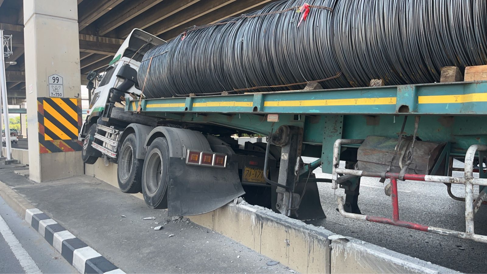 11.21 น. กรณีอุบัติเหตุ รถบรรทุกเหล็กม้วน 20 ตัน ปีนแบริเออร์ ถนนวิภาวดีรังสิต ขาออก เชิงทางขึ้นสะพานข้ามแยกสุทธิสาร