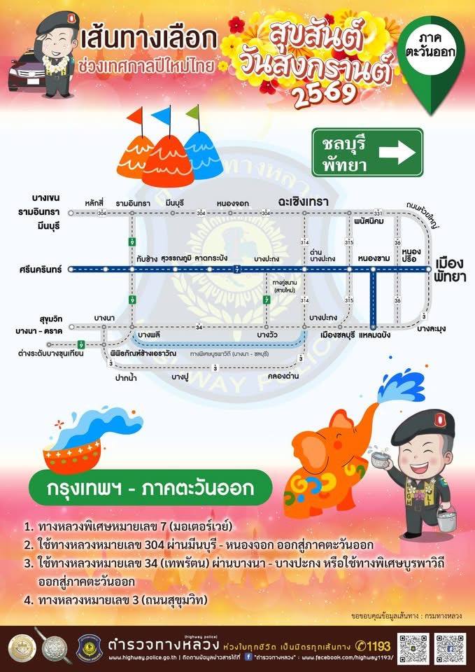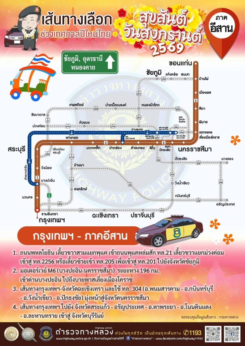 สอบถามข้อมูลเส้นทางและขอความช่วยเหลือ โทร. 1193 ได้ตลอด 24 ชั่วโมง ติดตามข่าวสารจราจรได้ทางเพจ “ตำรวจทางหลวง”