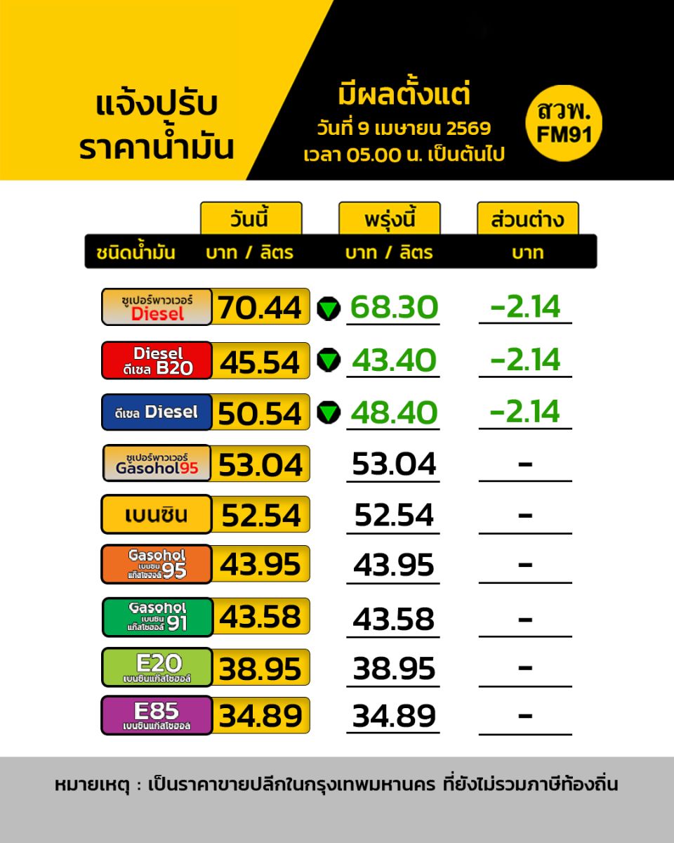 มีผลวันที่ 9 เม.ย. 69 ตั้งแต่ เวลา 05.00 น. เป็นต้นไป