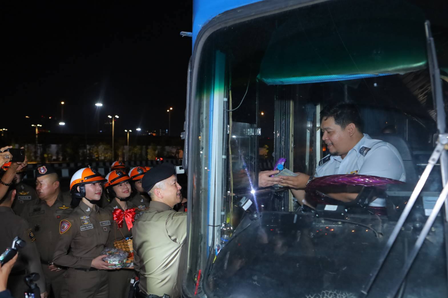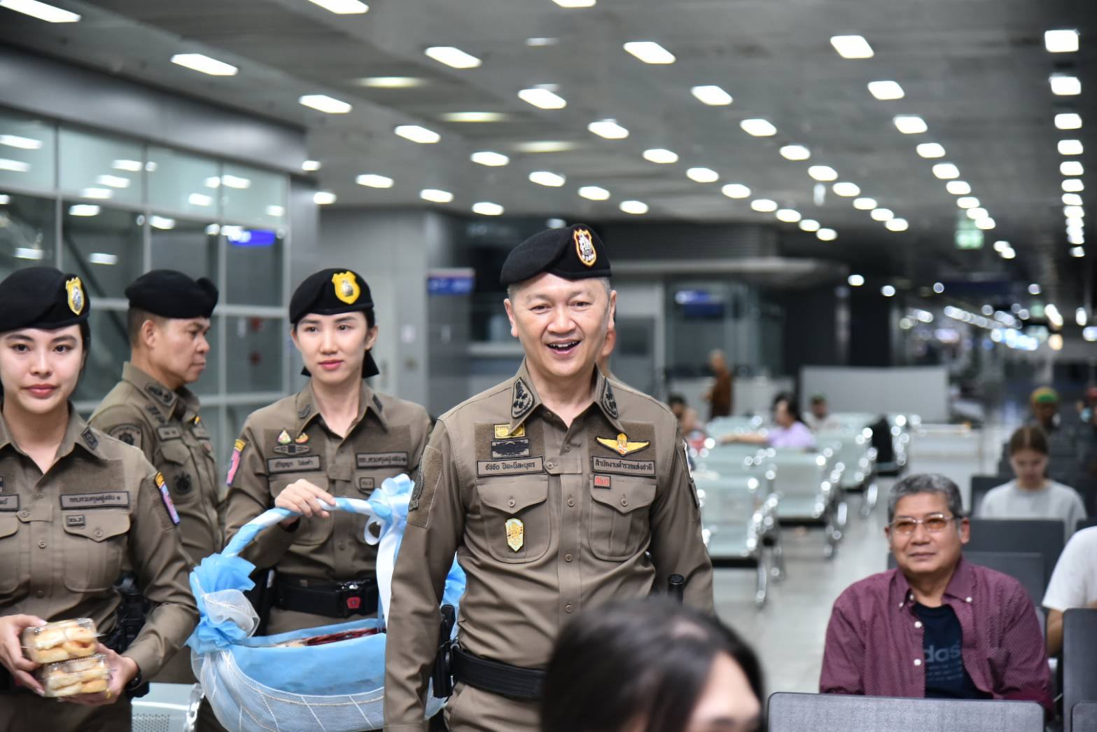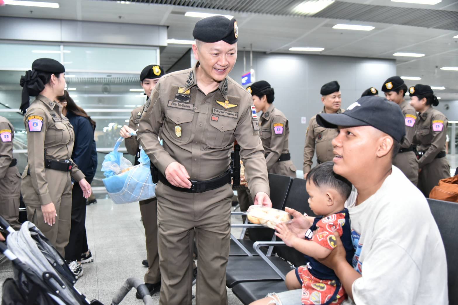 จากนั้น รอง ผบ.ตร.ได้ตรวจเยี่ยมและพบปะกำลังพล และปล่อยแถวกำลังพลพร้อมยานพาหนะออกปฏิบัติหน้าที่ ก่อนเข้าไปพบปะพูดคุยกับพี่น้องประชาชนที่มาใช้บริการภายในอาคาร พร้อมร่วมออกตรวจสภาพรถและตรวจวัดแอลกอฮอล์ของผู้ขับขี่รถรับจ้างสาธารณะ เพื่อสร้างความเชื่อมั่นและหลักประกันความปลอดภัยให้แก่ประชาชนตลอดช่วงเทศกาล