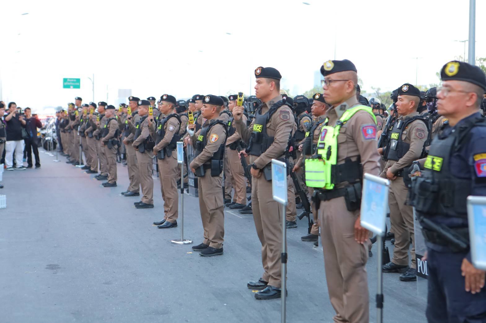 โดยมี พล.ต.ท.สยาม บุญสม ผู้บัญชาการตำรวจนครบาล, รองผู้บัญชาการตำรวจนครบาล, ผู้บังคับการตำรวจนครบาล 1–9 และเจ้าหน้าที่ที่เกี่ยวข้อง ประกอบด้วย เจ้าหน้าที่ตำรวจชุดปฏิบัติการพิเศษทางยุทธวิธี ระดับสถานีตำรวจ (MPB SWAT), เจ้าหน้าที่ตำรวจสายตรวจและจราจรในสังกัดกองบัญชาการตำรวจนครบาล, เจ้าหน้าที่ตำรวจหน่วยปฏิบัติการพิเศษอรินทราช, เจ้าหน้าที่ตำรวจชุดปฏิบัติการสุนัขตำรวจ (K-9), เจ้าหน้าที่ตำรวจชุดปฏิบัติการเก็บกู้และตรวจพิสูจน์วัตถุระเบิด, เจ้าหน้าที่ตำรวจกองบัญชาการสอบสวนกลาง และกองบัญชาการตำรวจท่องเที่ยว รวมทั้งสิ้น 318 นาย พร้อมด้วยรถยนต์สายตรวจ รถจักรยานยนต์สายตรวจ เจ้าหน้าที่เทศกิจ และเจ้าหน้าที่อาสาสมัครตำรวจ ร่วมพิธี