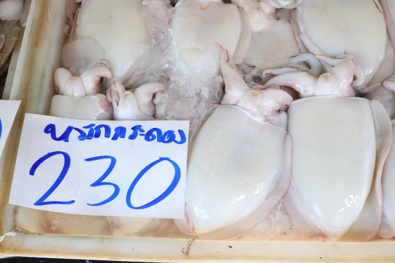 ภายในตลาด พ่อค้าแม่ค้าได้นำอาหารทะเลสดใหม่มาจำหน่ายจำนวนมาก ทั้งกุ้ง หอย ปู ปลา และปลาหมึก จัดเรียงเต็มแผงอย่างสวยงาม ท่ามกลางเสียงเรียกลูกค้า และบรรยากาศการต่อรองราคา ที่สร้างสีสันให้กับตลาด ซึ่งยังคงเป็นแหล่งจำหน่ายอาหารทะเลสำคัญของจังหวัดสมุทรสาคร