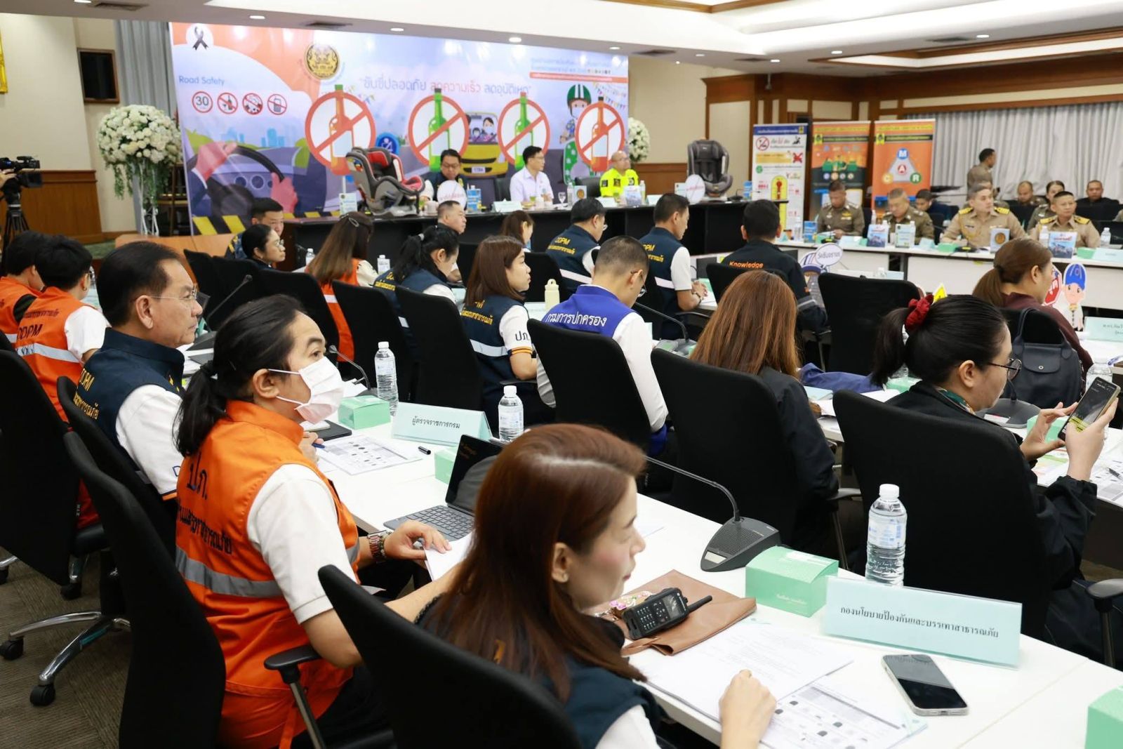 ด้าน นายธีรพัฒน์ คัชมาตย์ อธิบดีกรมป้องกันและบรรเทาสาธารณภัย (ปภ.) ในฐานะเลขานุการคณะกรรมการ ศปถ. กล่าวว่า ศปถ. ยังคงเน้นย้ำการทำงานเชิงรุกของ “ด่านชุมชน” ควบคู่กับการ “เคาะประตูบ้าน” เพื่อเฝ้าระวัง ตรวจตรา ป้องปราม ผู้ขับขี่ที่มีพฤติกรรมเสี่ยง โดยเฉพาะการดื่มแล้วขับ การไม่ใช้อุปกรณ์นิรภัย การไม่มีใบขับขี่ ก่อนออกจากพื้นที่ชุมชนตลอดทั้งวัน และให้จัดชุดเคลื่อนที่เร็วเข้าไปยังจุดจัดงานเล่นน้ำสงกรานต์ และจุดจัดกิจกรรมทางศาสนา โดยกวนขันห้ามปรามพฤติกรรมการเล่นน้ำที่เสี่ยงต่ออุบัติเหตุทางถนน รวมถึงให้ฝ่ายปกครองและ อสม. ใช้กลไกด่านครอบครัวป้องปรามผู้ที่ดื่มแอลกอฮอล์ไม่ให้ขับขี่ยานพาหนะอย่างเด็ดขาด เพื่อความปลอดภัยในช่วงเทศกาลสงกรานต์