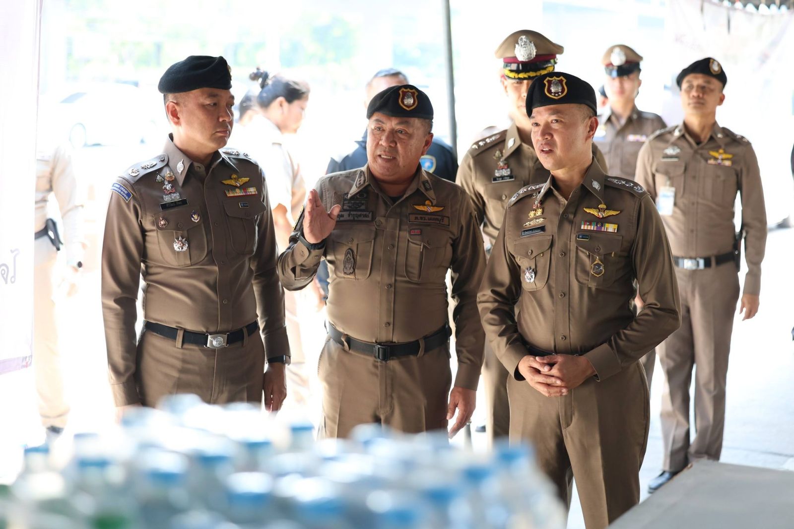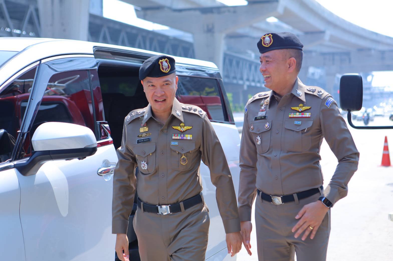 วันนี้ (12 เมษายน 2569) เวลา 10.00 น. พล.ต.ท.ไตรรงค์ ผิวพรรณ รองจเรตำรวจแห่งชาติ ในฐานะโฆษกสำนักงานตำรวจแห่งชาติ พร้อมด้วย พล.ต.ต.ศิริวัฒน์ ดีพอ ผู้บังคับการตำรวจสืบสวนสอบสวนอาชญากรรมทางเทคโนโลยี 1 ในฐานะรองโฆษกสำนักงานตำรวจแห่งชาติ ลงพื้นที่ประชาสัมพันธ์หน่วยบริการประชาชน เพื่ออำนวยความสะดวกด้านการจราจรและการเตรียมความพร้อมการป้องกันและลดอุบัติเหตุทางถนนช่วงเทศกาลสงกรานต์ 2569 บริเวณหน้า สภ.รัตนาธิเบศร์ จ.นนทบุรี โดยมี พ.ต.อ.จิรายุส วานิชกูล รองผู้บังคับการตำรวจภูธรจังหวัดนนทบุรี, พ.ต.อ.พฤฒ จำรูญศาสน์ ผกก.สภ.รัตนาธิเบศร์ ให้การต้อนรับและร่วมตรวจเยี่ยม